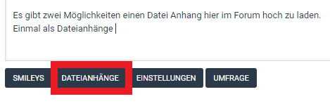 Es gibt zwei Möglichkeiten einen Datei Anhang hier im Forum hoch zu laden.
