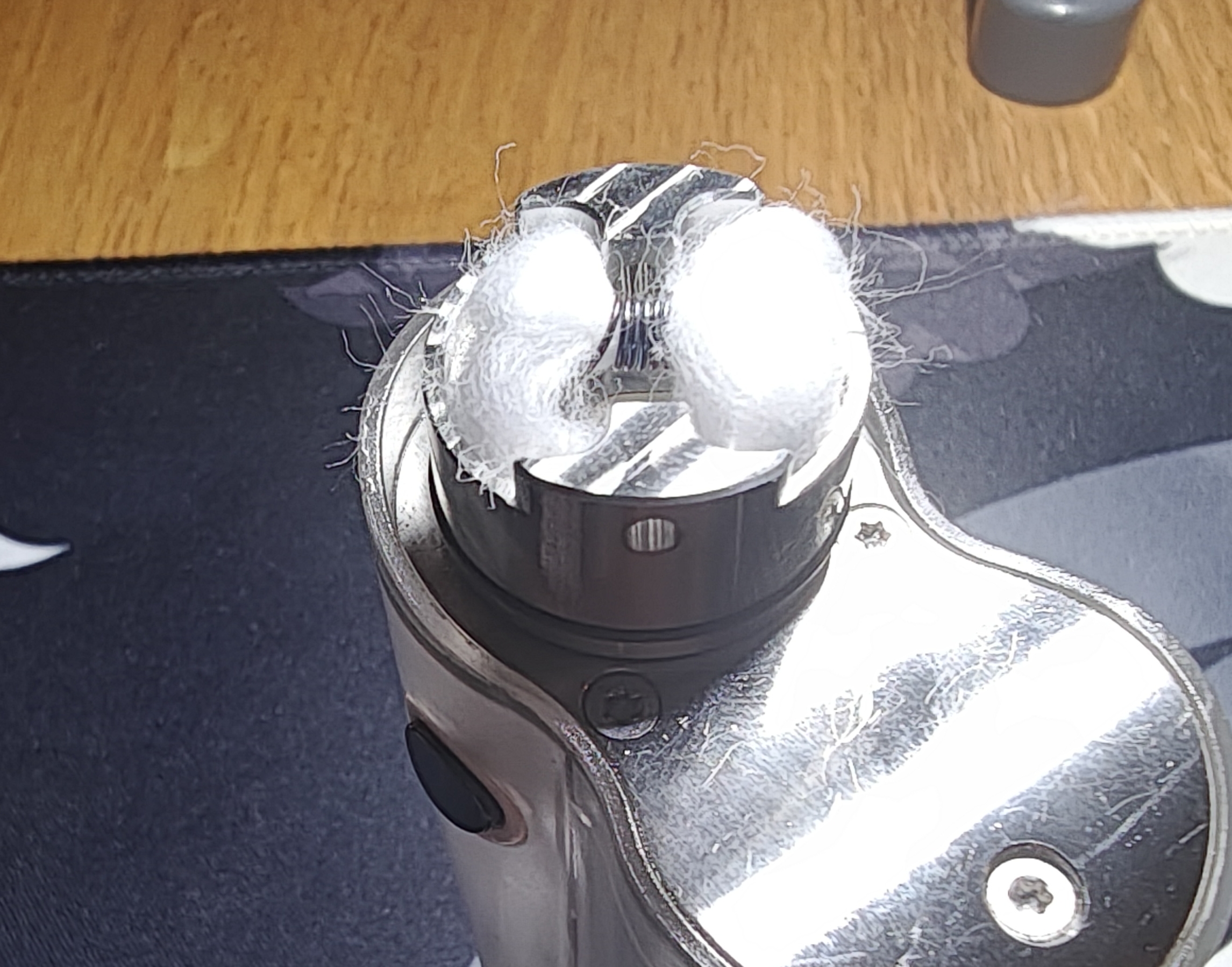 Kurz ausglühen dann Watte rein, auf den Seiten ungefähr mittig teilen und in das Deck "stopfen".