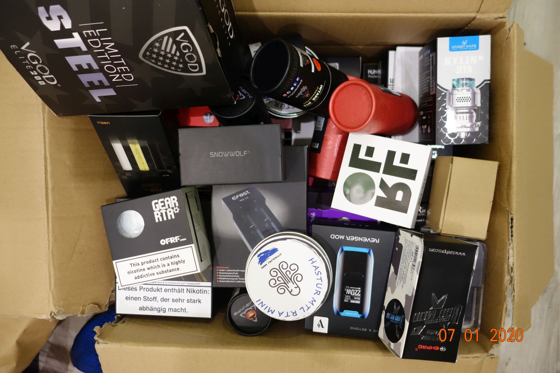Ich habe 3 solche Kisten hier voll bis unter den Rand mit Akkuträger und Verdampfer