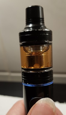 Das ist zugegebenermaßen ein bisschen tricky mit manchen Flaschen. Große Chubbys gehen eigentlich gar nicht oder nur, wenn man das DripTip ganz ab macht. Lieblingsliquids für die D19 habe ich mir dann einfach in 10ml-Fläschchen umgefüllt und nutze diese. Auch dann kann es beim Einfüllen mal ein bisschen siffen, wenn man zu ungeduldig ist. Bewährt hat sich, die D19 dabei ein bisschen zur Seite zu neigen, so dass das Luftloch oben ist, und stetig aber vorsichtig einzufüllen. Ist aber Übungssache.
