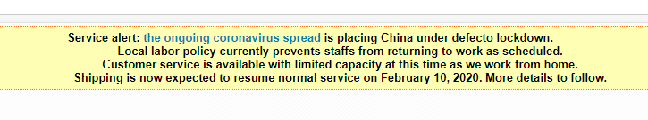 Habt ihr eigentlich schon den Disclaimer bei "Fasttech" gesehen? Die Mitarbeiter kommen nicht mehr zur Arbeit, Versanddauer dehnt sich.