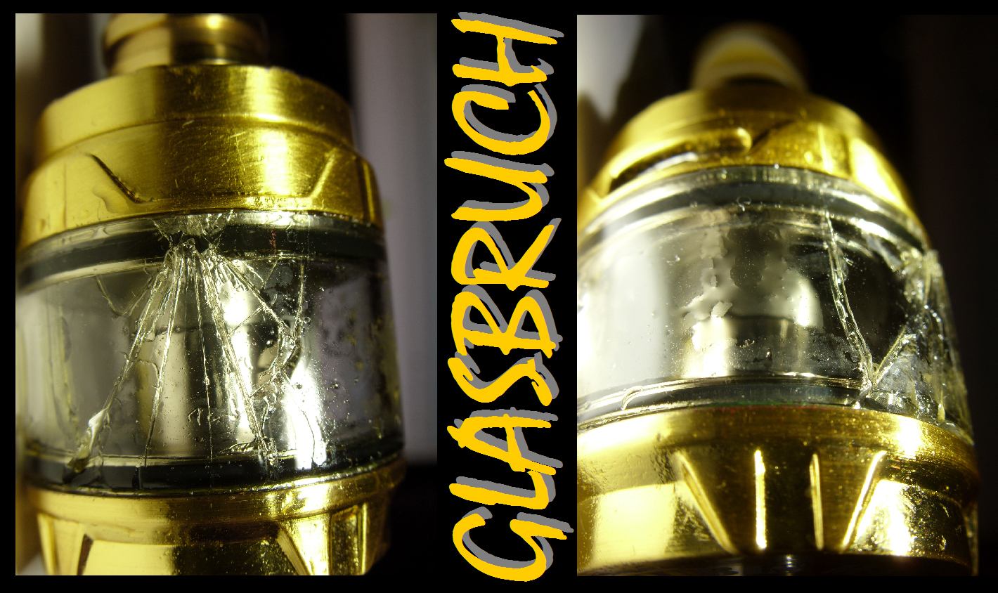 Komme nach der Nachtschicht zu Hause an, trage zwei Mäntel, weil es kalt ist (einen Parka und darüber einen gelben Warnmantel, wie ihn Straßenbauarbeiter tragen), will sie hastig ausziehen und mache das nicht in der Diele, sondern im Wohnzimmer, denn mit beiden Mänteln ist man ein wenig mollig, braucht Platz aber verliert das Gefühl für den eigenen Umfang. Prompt stoße ich die güldene Tube "Ultex T80" vom Tisch. Sie fliegt im hohen Bogen auf die Fliesen. Der Tank ist zersplittert, "Cubis Max". Das macht allerdings nix, denn ein Reserveglas ist vorhanden. Aber ist sowas nicht surreal?: da nehme ich extra die unkaputtbare "Aegis Solo" mit zur Arbeit, nur draußen, heftige Outdoor-Prüfungen, die sie jede Nachtschicht mit Bravour besteht, nicht mal das Glas vom Tank geht kaputt, und dann zerstöre ich zu Hause im Wohnzimmer mit den Arbeitsklamotten die Tischdampfe. Sachen gibtꞌs ...