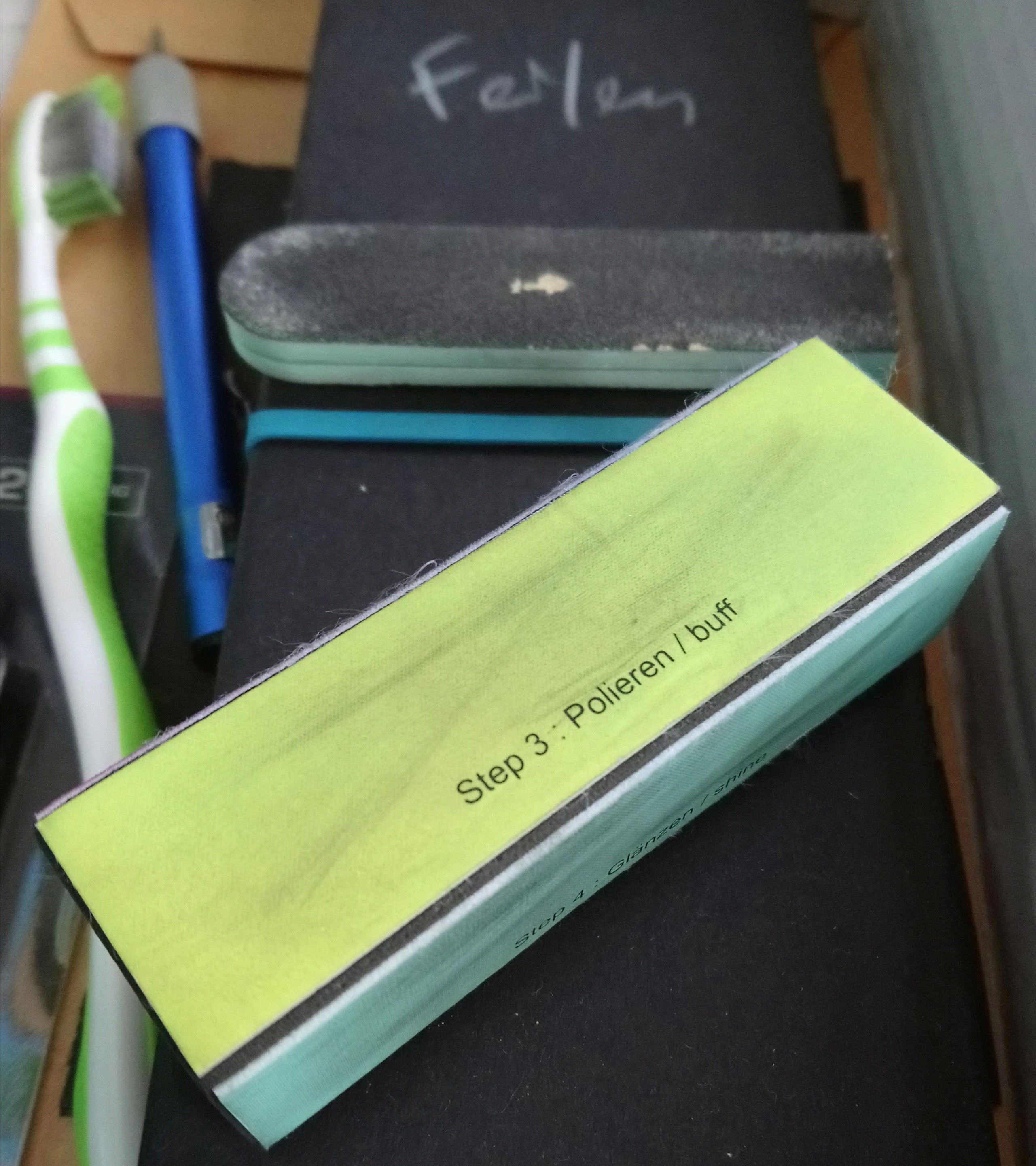 Dann wird es die (sehr feine) Feile. Die meiner Frau lasse ich aber lieber da, wo sie ist. Die merkt das... :emojiSmiley-01: