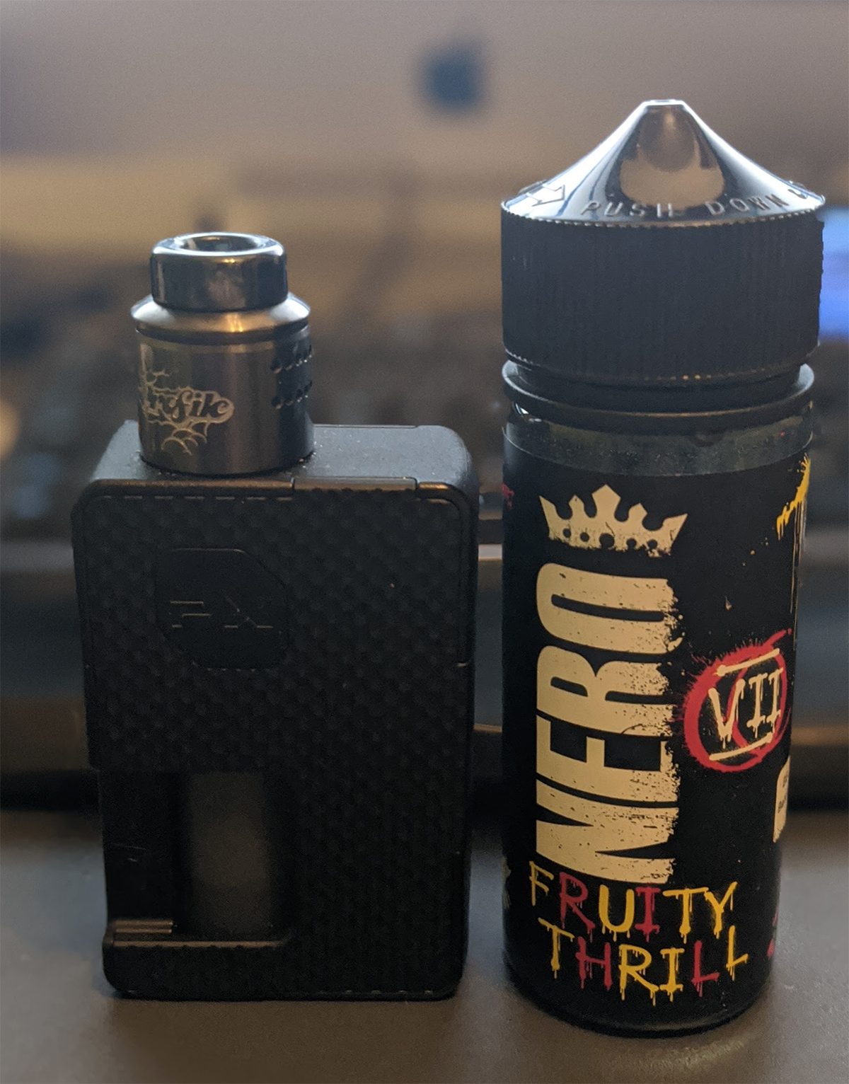 Mato in Gold auf der Vaporesso Gen mit Abstrakt von Steamshots gefüllt und der Vapor Giant V5M auf der Nebelfee-Box mit the white Rabbit als Inhalt