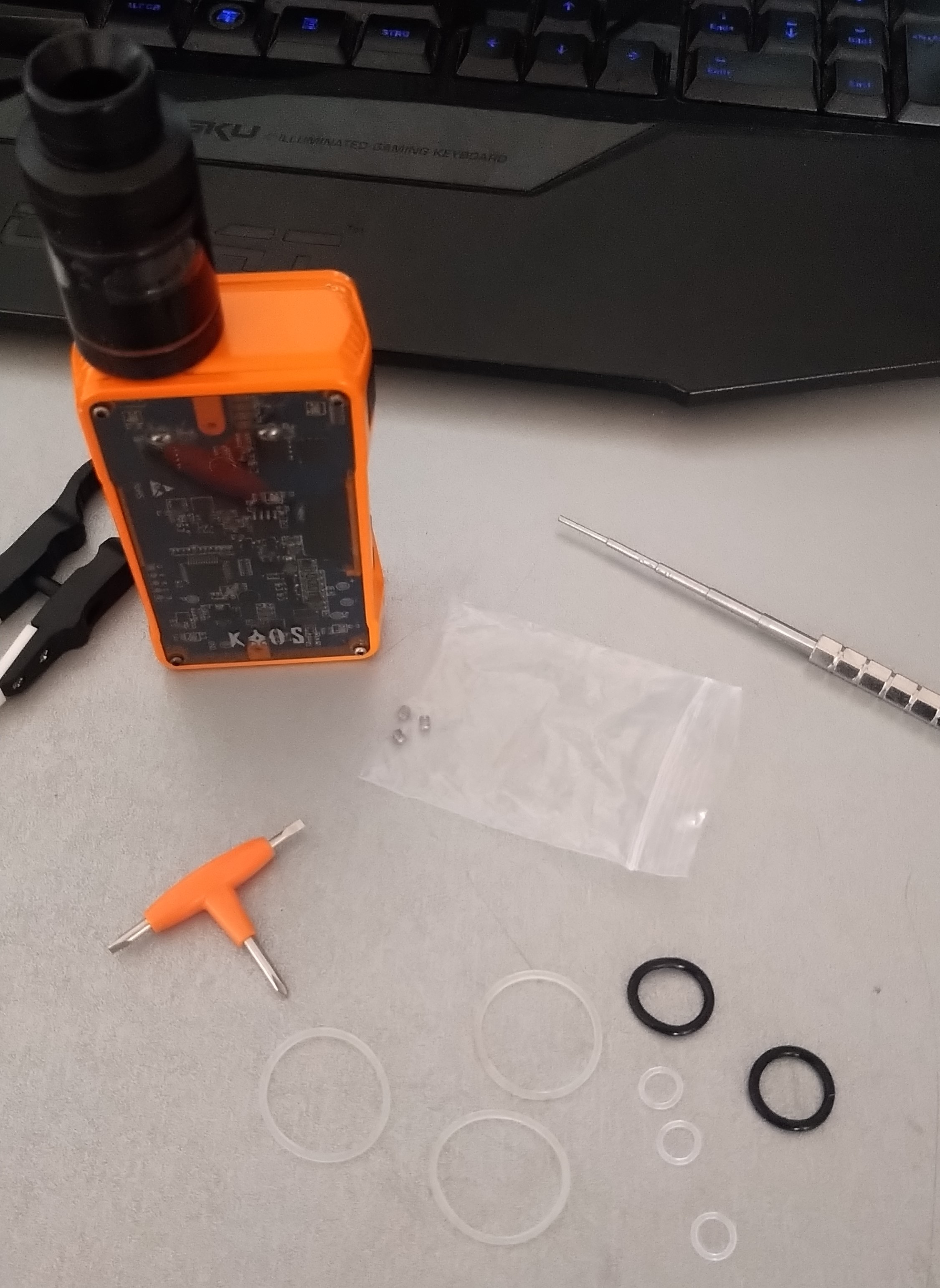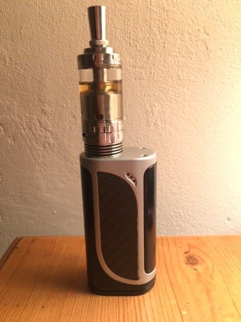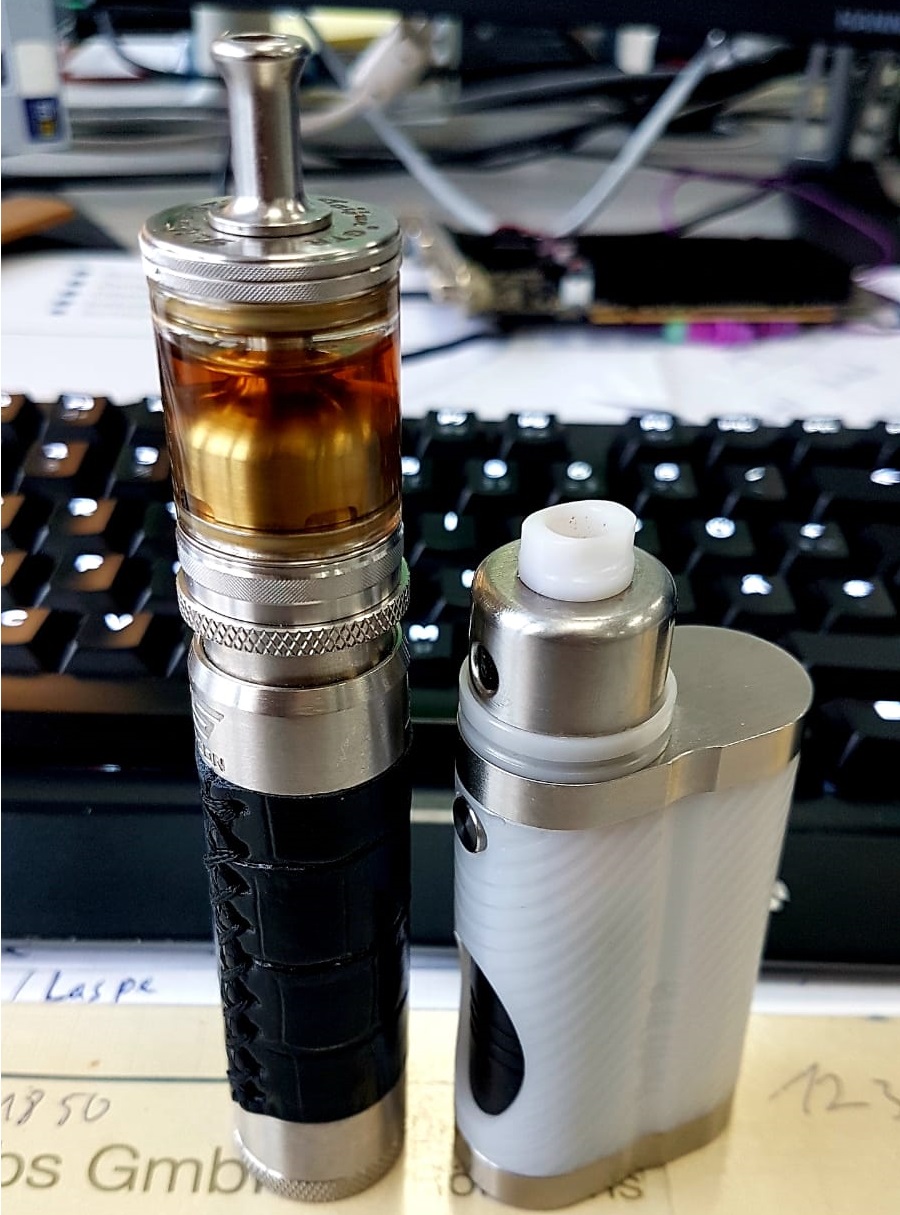 Der Eleaf Invoke steht hier auch noch. Auch ein feines Gerät. Nur der Akkudeckel ist n bisschen problematisch. Viele haben aber bei dem Bedenken, da er keine Dichtung oben am Gewinde hat.