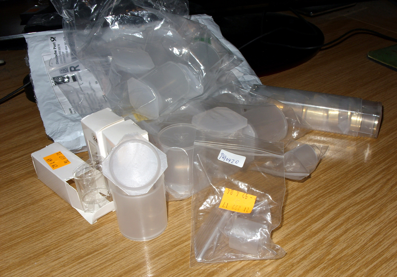 Die Verpackung ist aber auch schon das Beste, denn man glaubt es kaum, man glaubt es kaum, diese Tanks passen nicht. Auf keine Dvarw-Version, auch nicht FL. Weder das 24-Millimeter-Klarglas, noch das mit 22 Millimetern für V2. Es fehlen vielleicht fünf 100stel Millimeter. Das milchige Glas, von dem auch ein paar dabei sind, passt hingegen prima. Deswegen vielleicht die schnelle Lieferung, FT ist froh, die anderen endlich los zu sein. Schnell wech damit oder so ;)