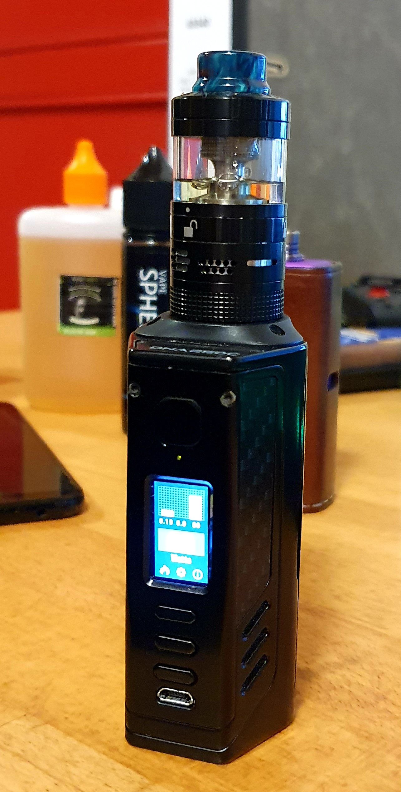 • Also, ich finde meine Hadron schön, darauf thront ja der Ragnar und wenn ich den beim 4ten Mal auffülle, wechsel so um und bei den Akku (nach immerhin rund 55ml). Somit ist das meine "einfach greifen"-Kombi, bissl bequem muss ja auch sein. Und wenn ich doch irgendwann mal squonken will, kommt das "Backpack" (mit 18ml) auf die Hadron und dann hab ich einen (für mich) schicken dual 21700er SquonkMod :P :D