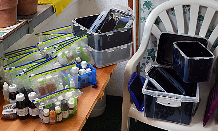 • Uii habt ihr viel Vorrat. Also ich habe da nur 5 x 100ml Glasflaschen da stehen, und das war´s dann aber auch.