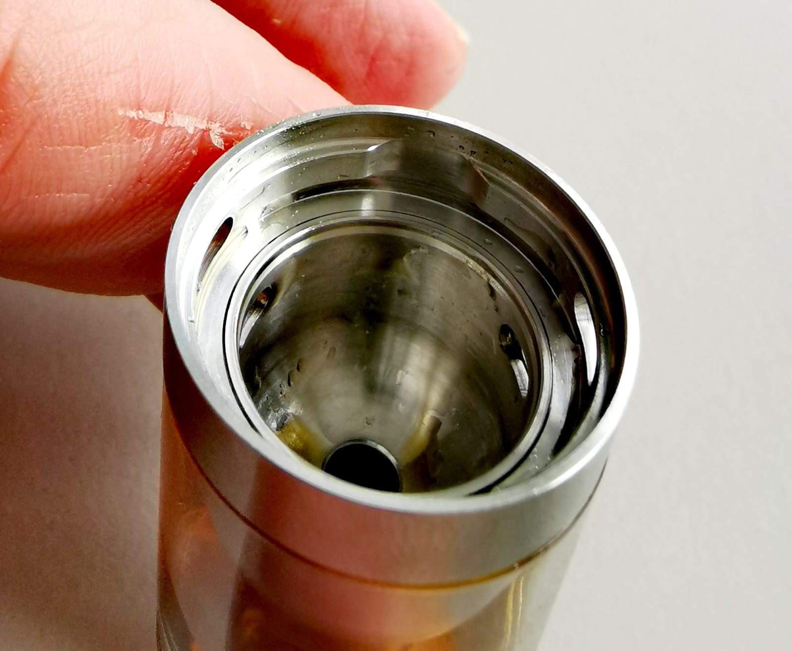 Ganz schlecht finde ich den Verdampfer nicht, neben der Asymmetrie gefällt mir die relativ scharfe Wankelscheibe nicht so wirklich...optisch schon, aber sie ist spitz an den fingern und am Mund. Desweiteren frage ich mich wie lange das dünne Gläslein halten soll, ich kann mir gut vorstellen, dass das relativ flott platzt. Hier wird es also beim Clone bleiben, der HWV für das original schläft.