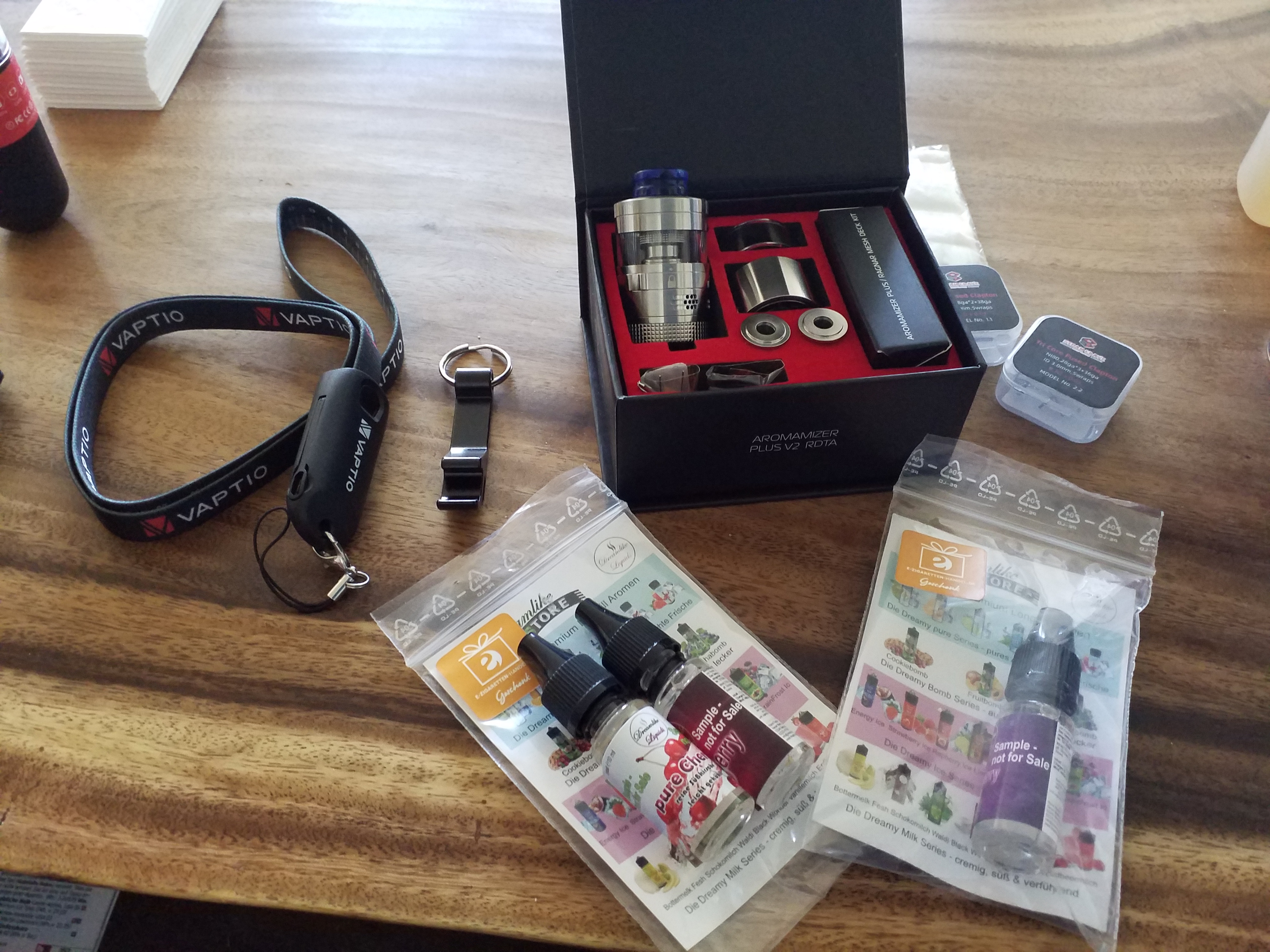 Heute kam der Aromamizer V2 mit den bestellten Coils und jeder Menge Goodies an. Irgendwie bin ich zu doof die Kaminreduzierung darin unterzubringen