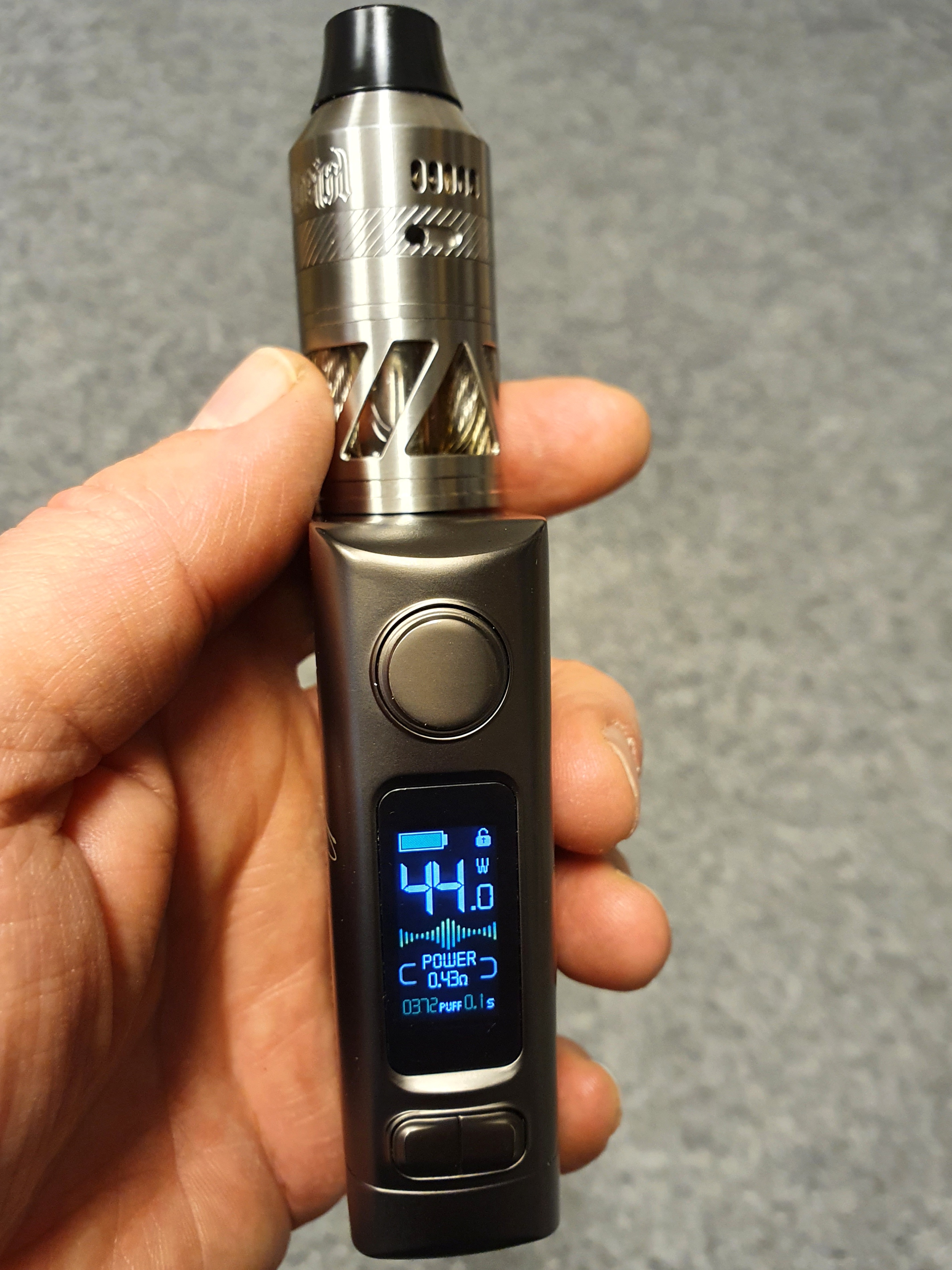Weil ich noch immer darüber nach denke welche Verdampfer und Mods in den Bunker wandern, habe ich testweise den Helheim auf den Istick Power geschraubt. Auch keine schlechte Kombi, besonders weil der Istick mit 5000mAh ein wirklich großes Akku hat.