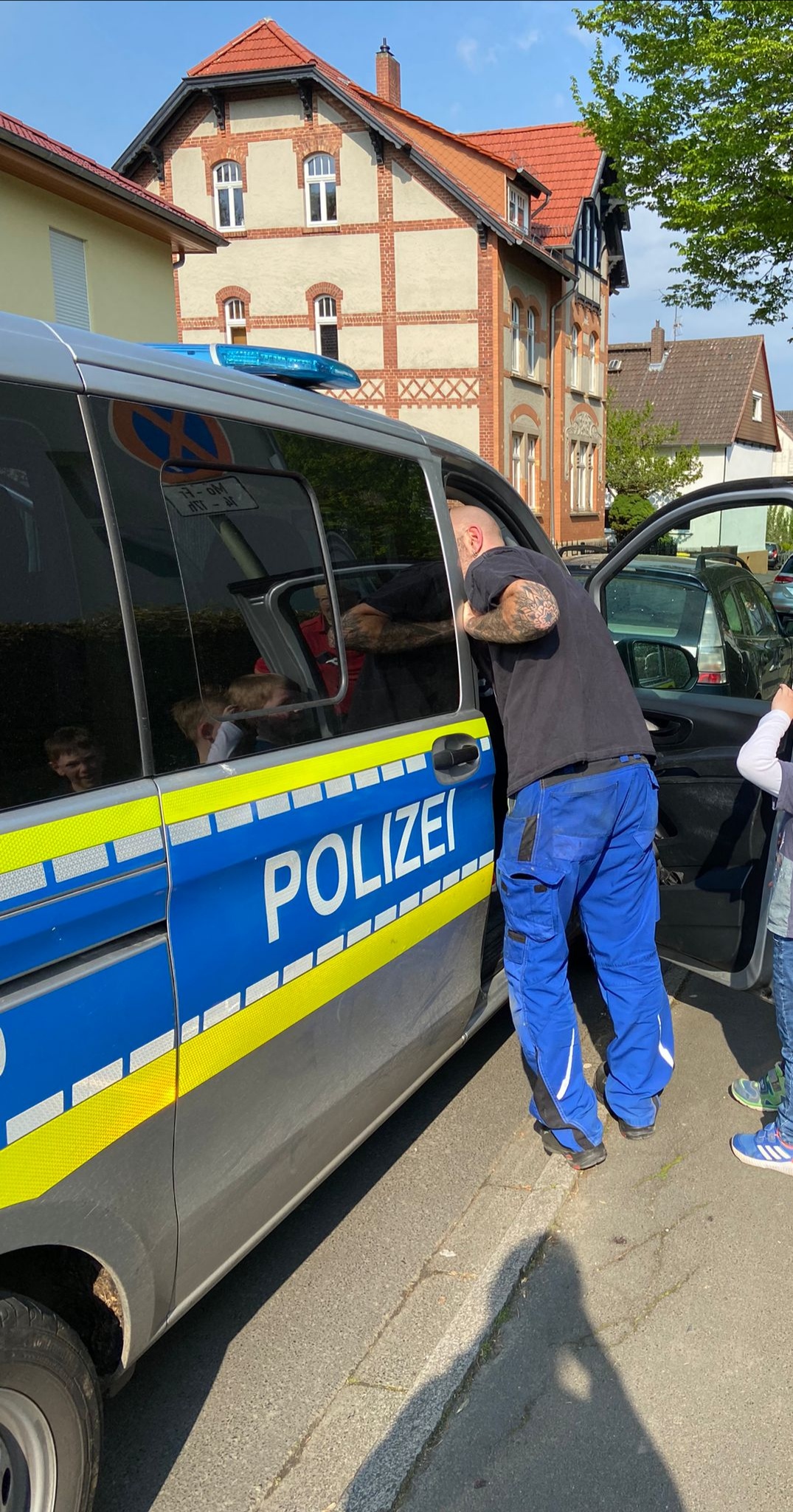 Da die Mama heute vorm Kindergarten nen geparktes Auto geschrammt hat, durften unsere Jungs ganz in Ruhe den Einsatzwagen inspizieren