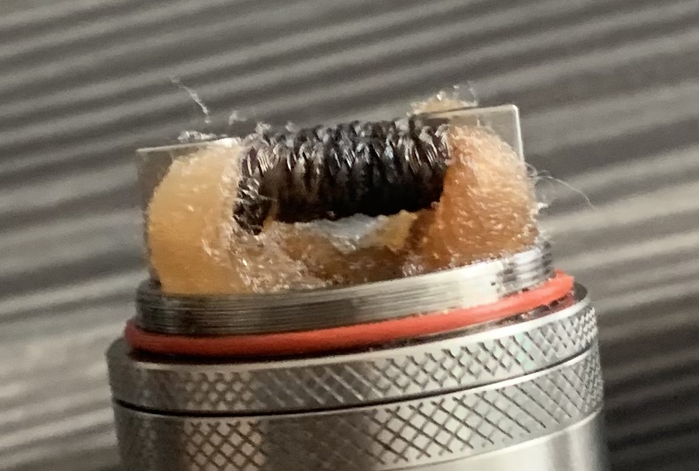 304er Teppichbraids mit 4mm Durchmesser, Dual 0.1 Ohm. Sind für die Größe sehr schnell und sehr smooth. Gemütliche Riesenwolken voll Geschmack sind so möglich…