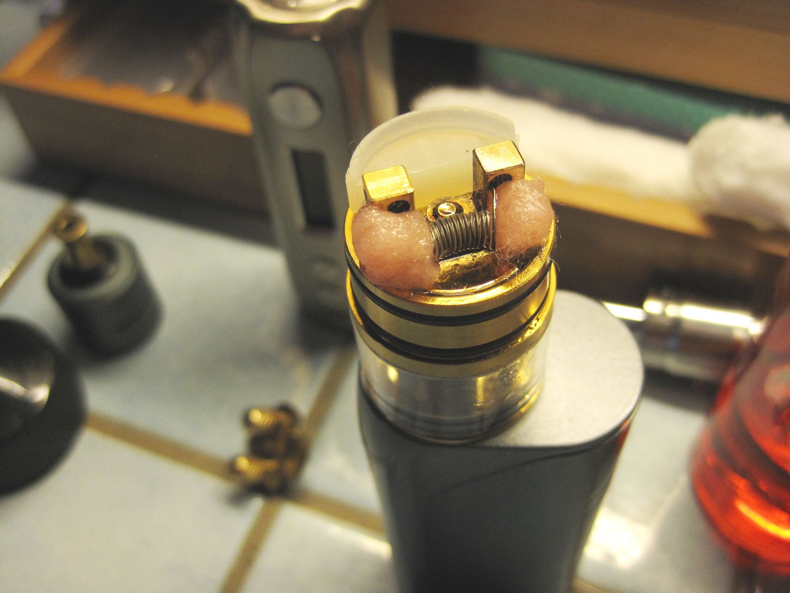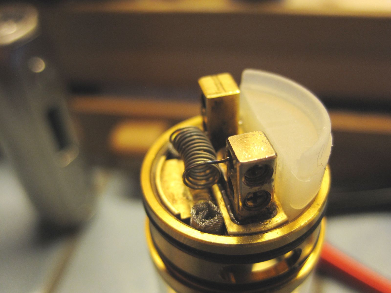 Ausgeglüht, 0,9 Ohm, Watte auf die Dochte gelegt ...