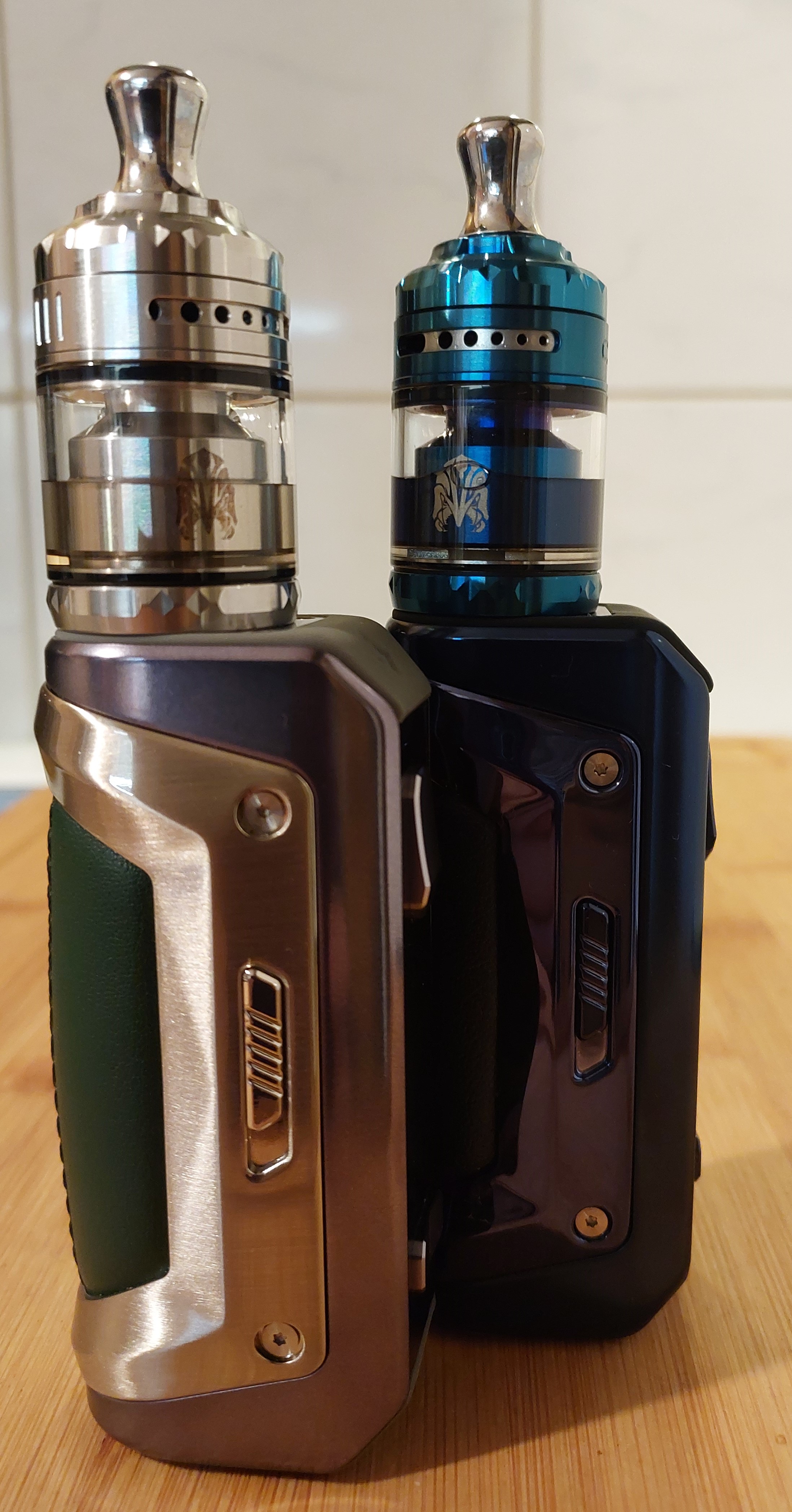 Arbiter Solo RTA, beide heute eingezogen. Erste Wicklung und es blubberte. Neuer Versuch, Watte an der Base außen abgeschnitten, minimal ausgedünnt, alles gut. Bin nun sehr zufrieden. Ein kritischer Punkt ist das Abschrauben der Base in Verbindung mit dem Glas. Das wusste ich aber vorher. ZumaFx , Du hattest es ja erwähnt. Ach ja, beide knistern und knattern schön vor sich hin, hören sich fast gleich an, schmecken tun sie auch gut :-).