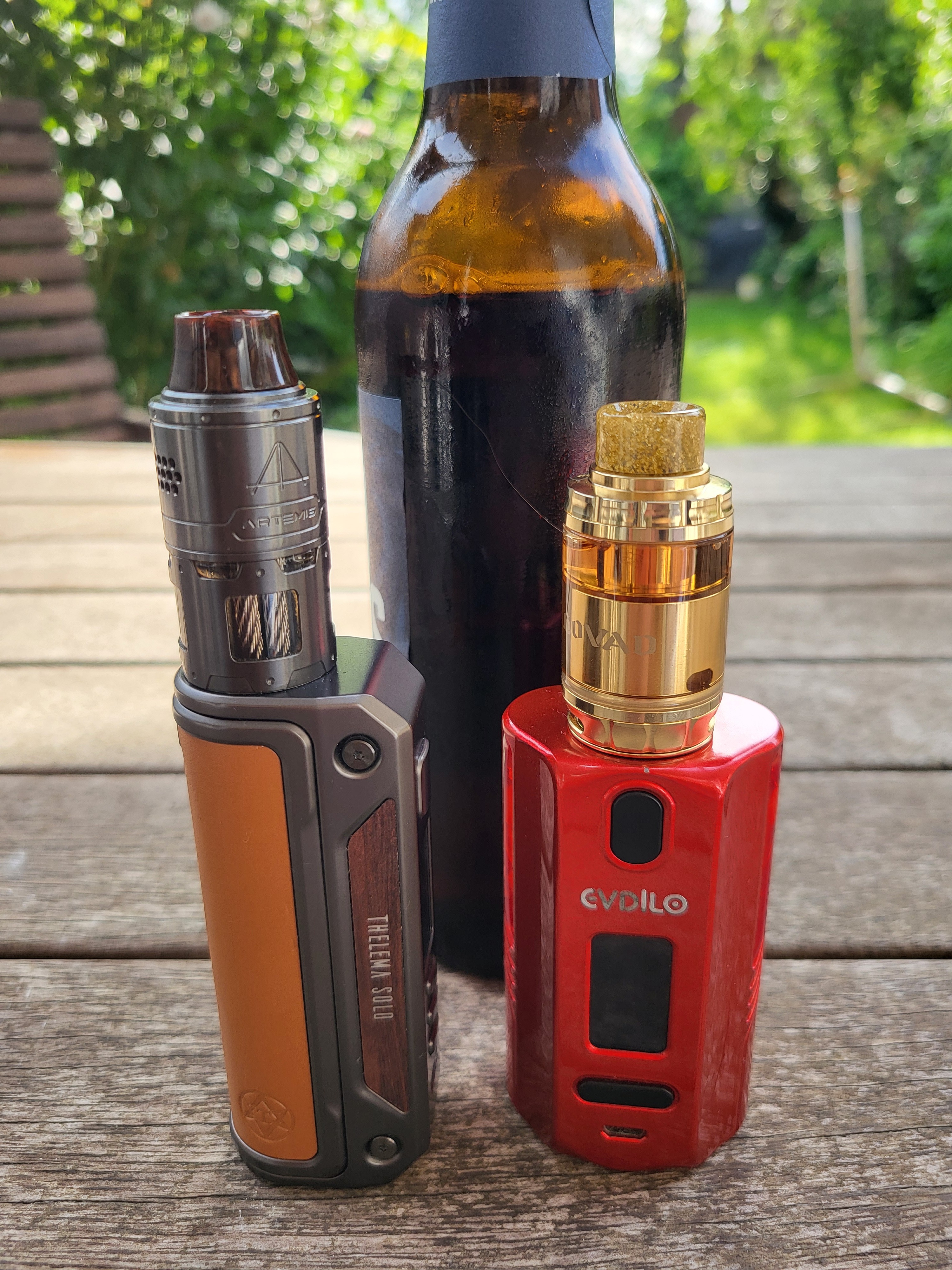 Zum letzten Urlaub hatte ich für eine Woche 4 Kombis und entsprechend Liquids mitgenommen. Sollte ein Versuch sein ob ich auch mit weniger auskommen kann. Den Blödsinn mache ich nicht nochmal. Beim nächsten Mal kommt wieder alles mit was ich zuhause auch täglich nutze.