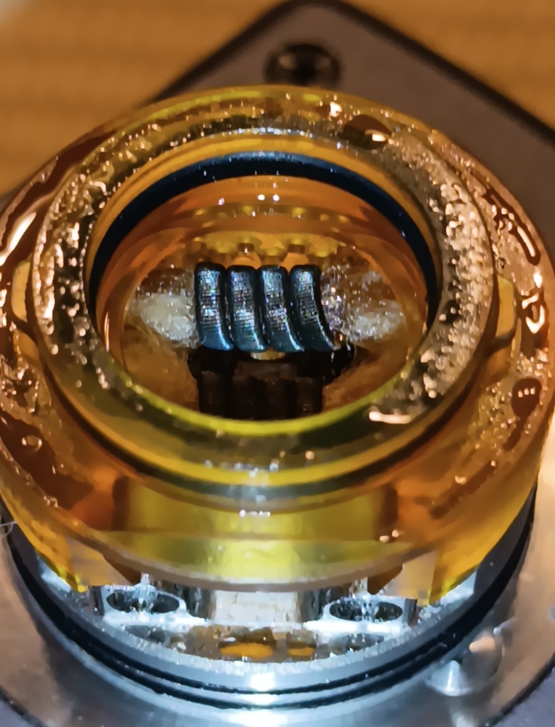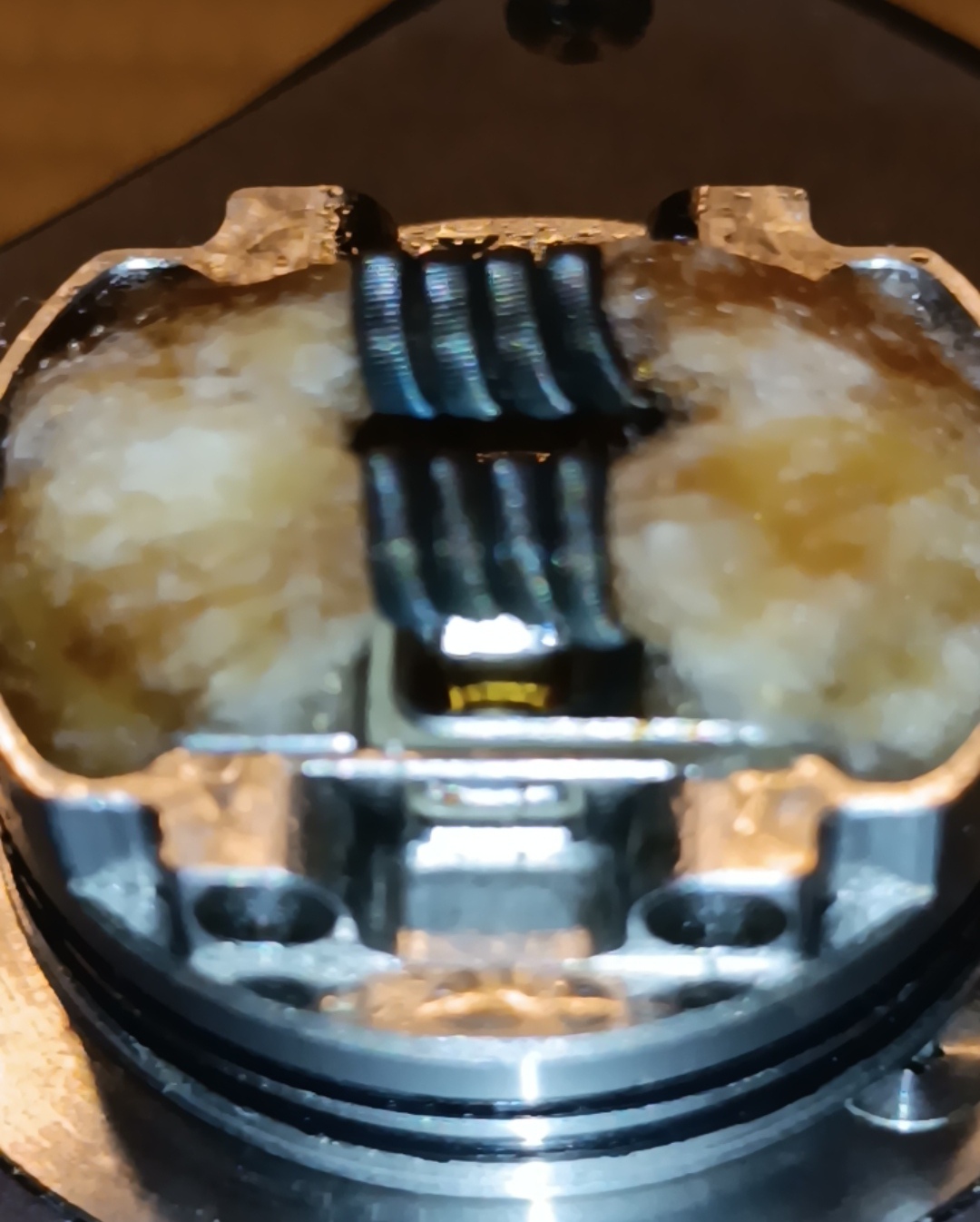 Z.Zt. hab ich den Nightmare V2 in Arbeit. Mit Claptons und 6-7 Wicklungen haut der nicht hin. Die Ultem Kammer ist so dermaßen eng das solche Coils viel zu groß sind. Da ensteht keine richtige kaminwirkung außerdem läuft beim tröpfeln das Liquid an der Coil runter und in der Airflow direkt unter der Coil. Die Watte kriegt da nicht viel ab. Jetzt hab ich kleinere 2,5 mm Coils drin. Das geht besser. Geschmack und dampf absolute extraklasse und wesentlich leiser als der v1