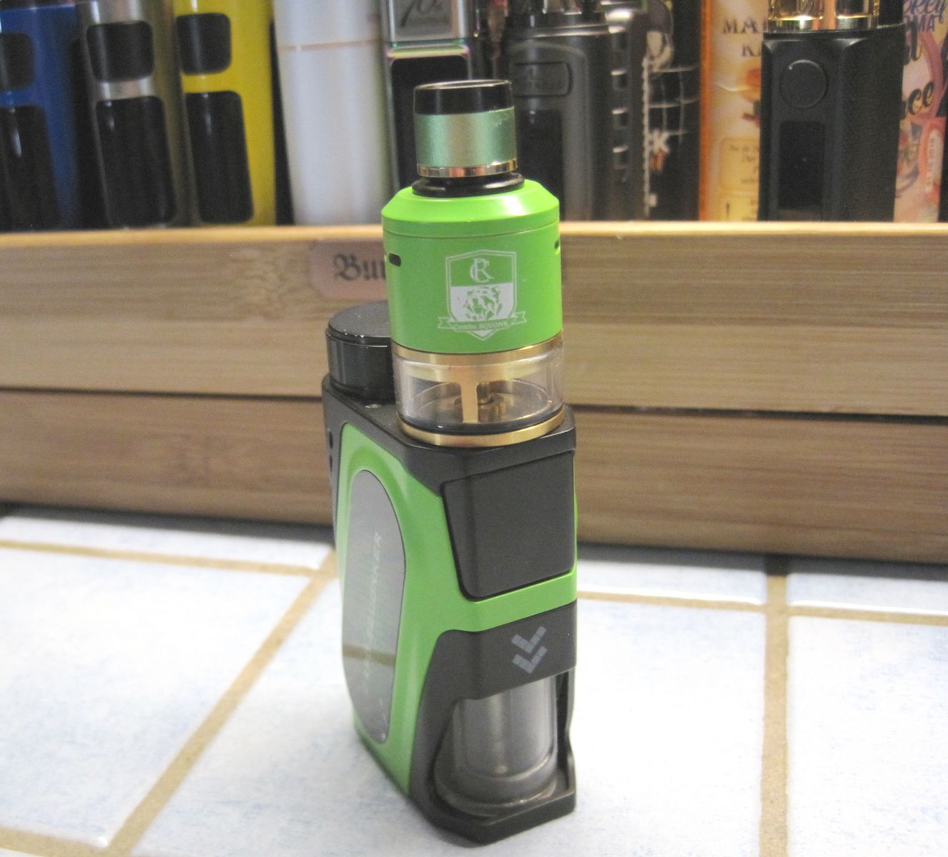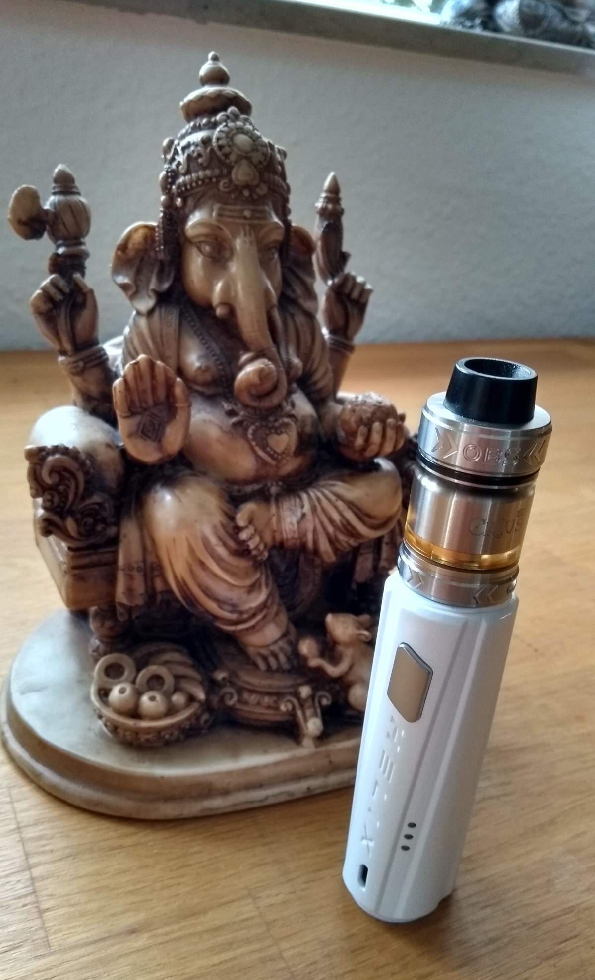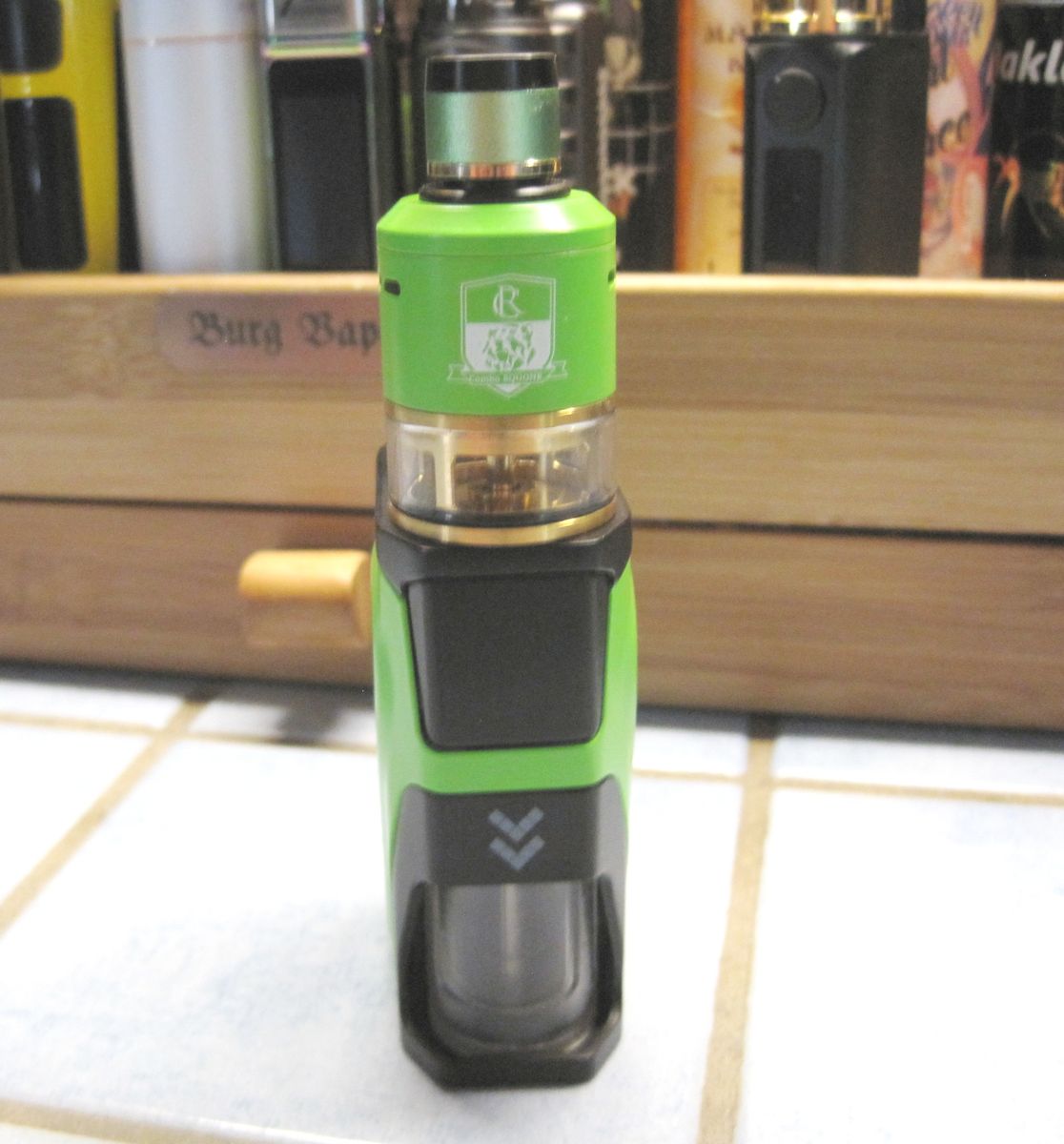 • Da alle anderen Mods noch immer in der Umzugskiste liegen, hab ich seit Tagen „nur“ die Hanzo am Start. Tolle Box. Der SiChro hat seit 2 Wochen keine neue Watte gesehen und dampft immer noch. Der Geschmack wird aber allmählich flacher.