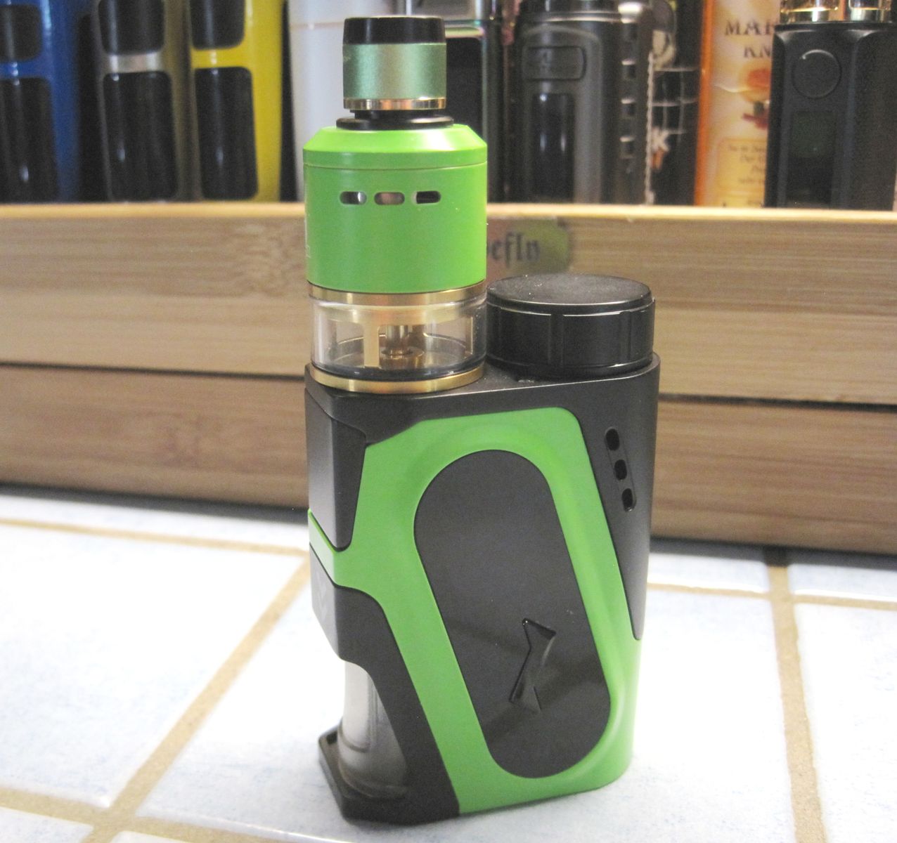 Es war der kleine, leichte AT: Easy side Box https://www.steampipes.de/Easy-Side-Box-Mod-Clear-Polished. Drauf musste hier mein TRIPOD von Atmizoo, der mit der kleinen Tankerweiterung genügend über die Akkuröhre ragt.