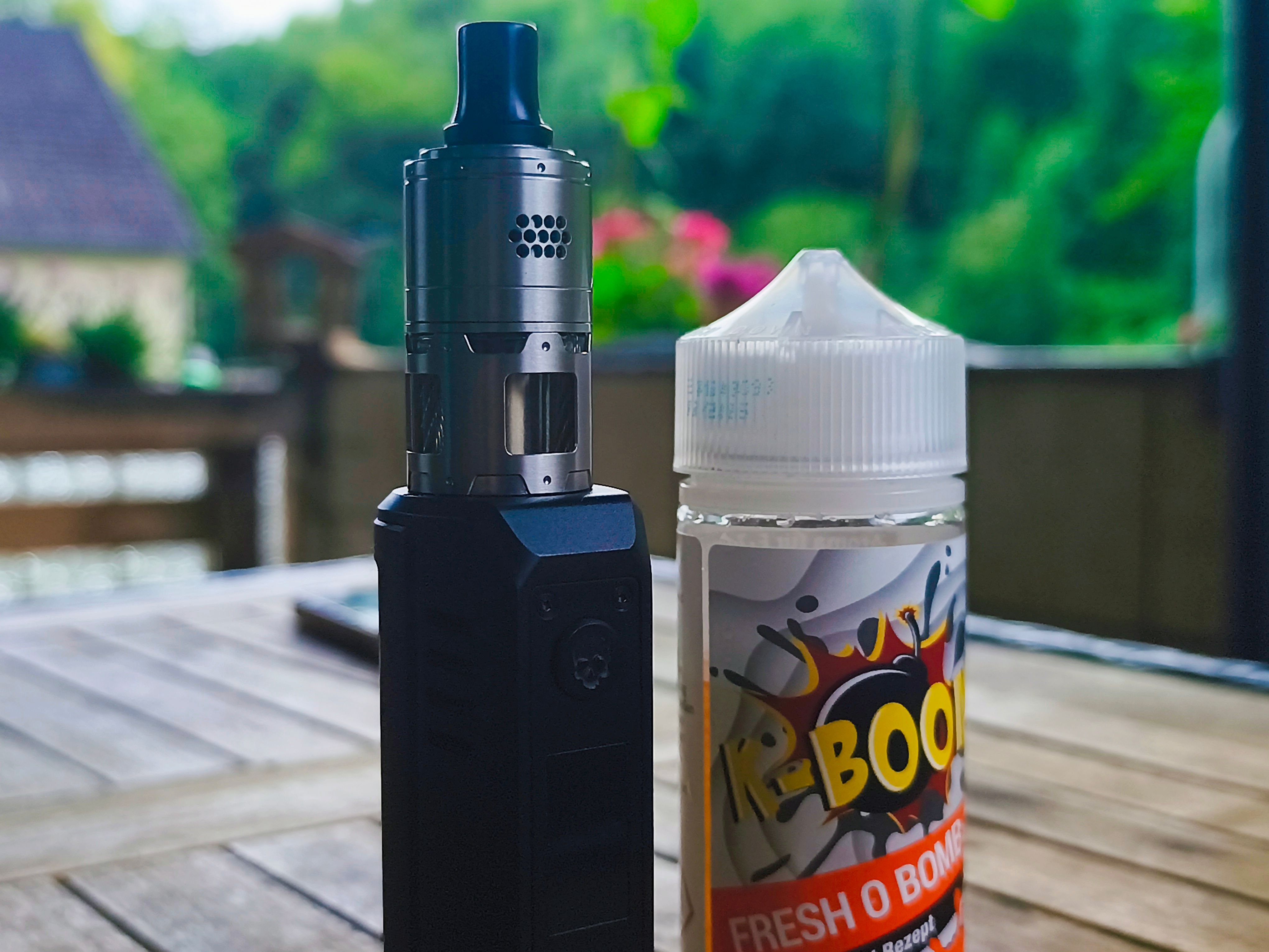 - 1x SUICIDE MODS - VAPING BOGAN - ORCA VAPE: : Stubby AIO (mit dem neuen DNA 60C-Chipsatz von Evolve und dünneren 18650er Akkus (alle drei Tanks haben aber den gleichen Inhalt von 9 ml, da ich als MTLer von den 4en nur 2 Stahlseile zum Liquidtransport brauche.)