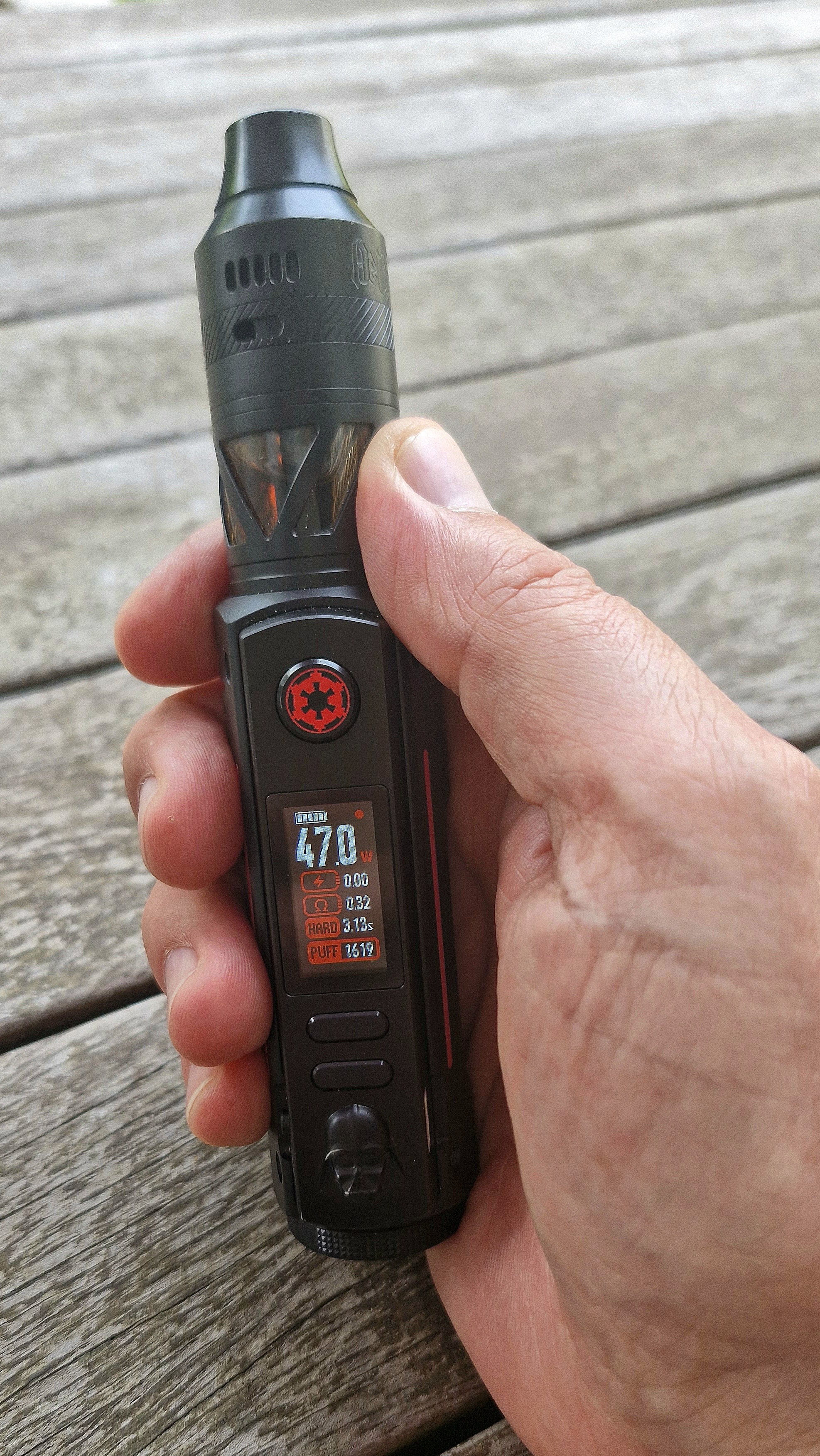 Wie ich heute im Shop erfahren habe, gibts davon nu ne V2. Die hat nu einen Ausschalter (unten drunter), einen größeren Airflow-schieber und ein moderneres Menü. Meine Freundin dampft die nachher ein, gabs einfach mal als kleines "Danke" von mir.