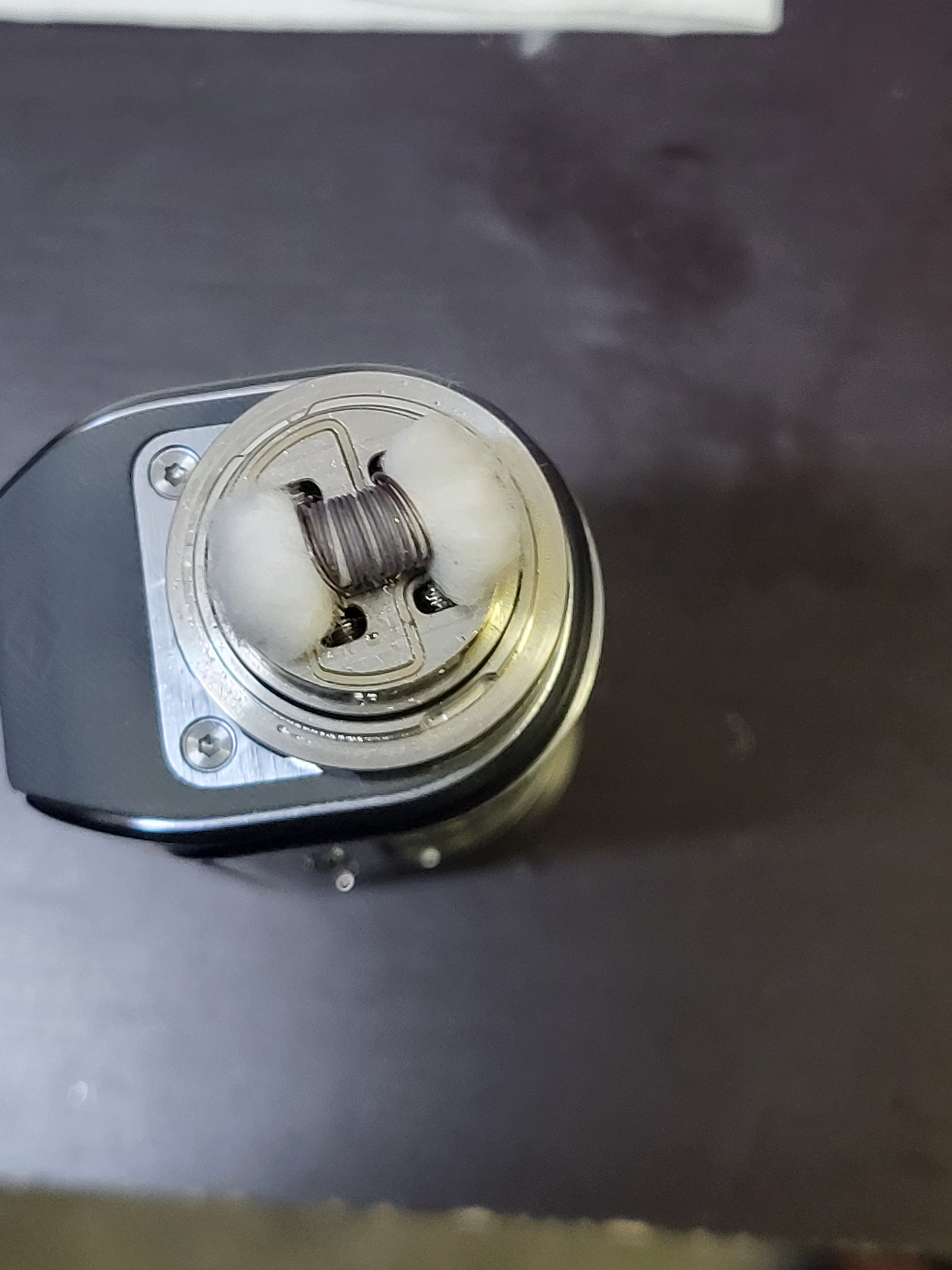 Fat Rabbit solo auf der Aegis Max. Gestern habe ich die zuerst eingebaute braidet Coil mit 6mm Beinchen und 3,5mm ID gegen eine 4,5mm Parallelcoil mit 5mm Beinchen getauscht. Passt für mich besser zum Fat Rabbit solo, weil die obere Airflow die Coil besser trifft.