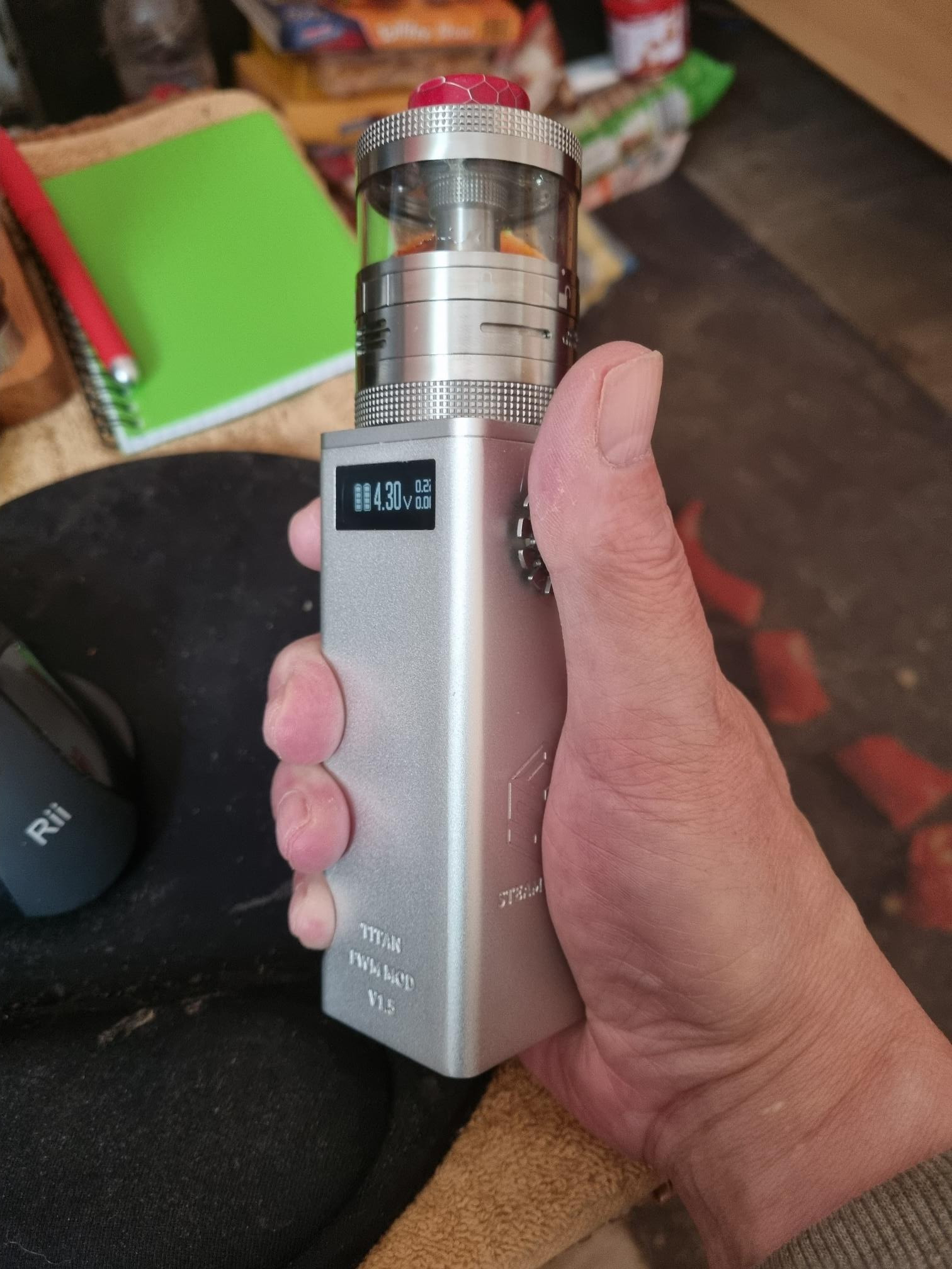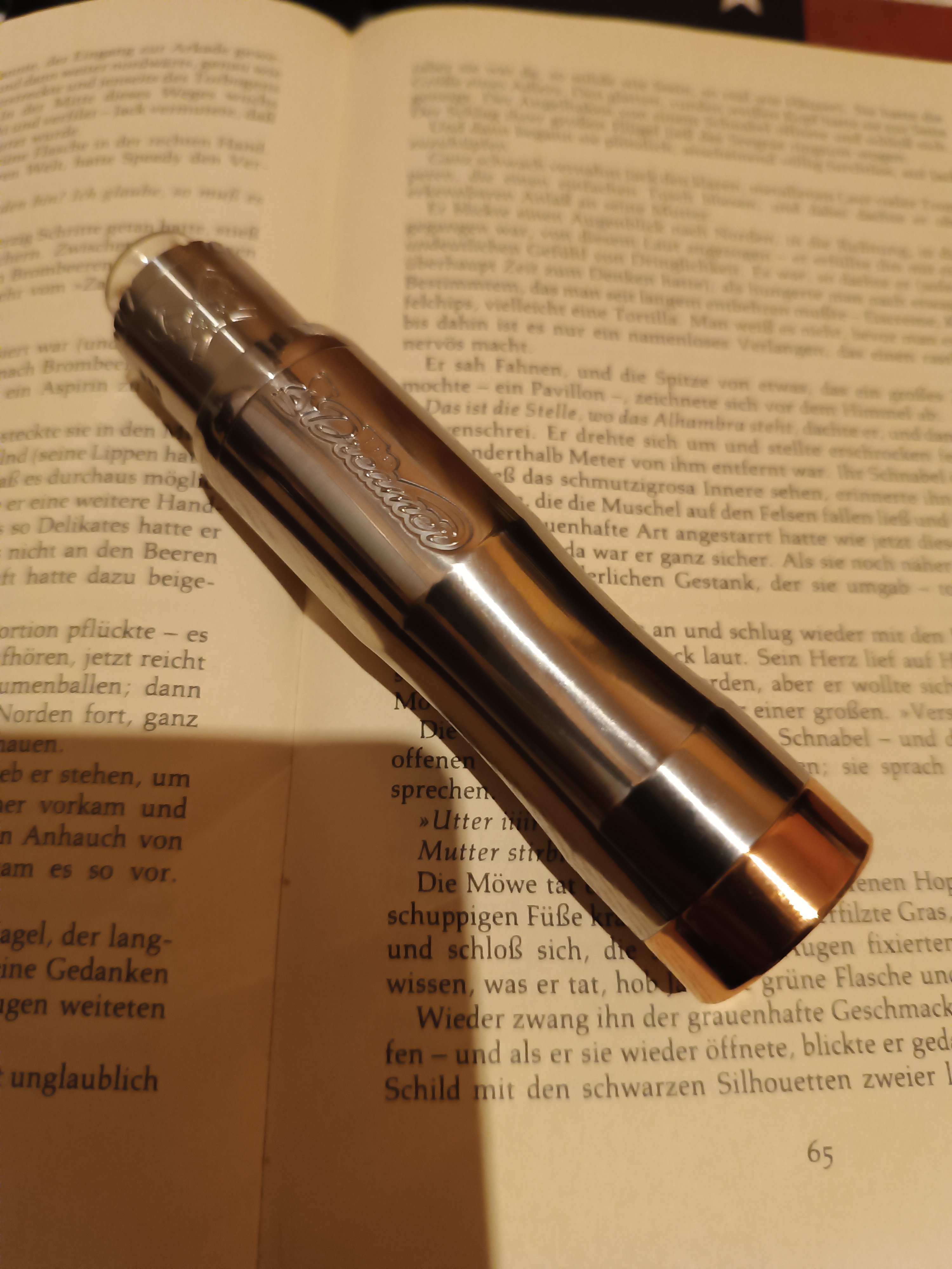 Auch mal etwas weihnachtlich aufgemotzt meine einzige aber auch schönste E-Pfeife, die ich je gesehen habe. Mit einem enormen Aufwand hergestellt und letztendlich an mich verschenkt von unserem Mitglied fritsche. Ich kann nur immer wieder danke sagen bzw. schreiben. Eingebaut ist ein singlecoiler Artemis und gedampft wird darin natürlich mein leckerstes liquid gentleman´s finest, dessen Geschmacksentfaltung darin einfach klasse ist.