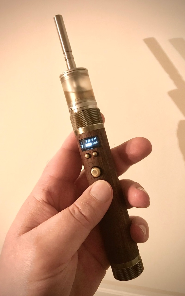 Alte Holz-Vamo - nix zum Wolken werfen, aber zum gemütlichen Rumnuckeln echt prima. Kann man auf der Brust ablegen und muss zum Ziehen nur leicht anheben.