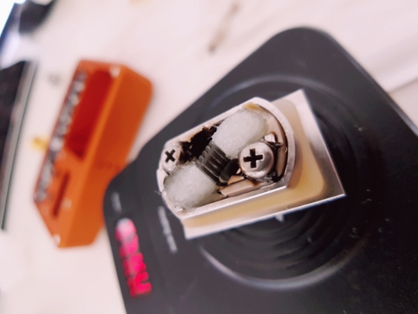 Weder Watte noch Wicklung sahen jetzt schlimm aus. Nur der Teil der Watte welcher in der Coil sitzt ist vielleicht einen Tacken dunkler als erwartet.