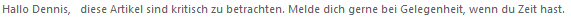 Dankeschön, softius. Ich werde es weitergeben.