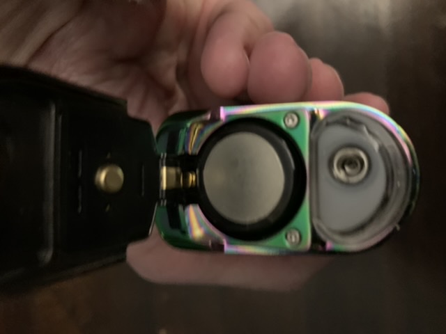 Es handelt sich hier um einen Squonker mit einem etwas ungewöhnlichen Füllprinzip. Im Boden ist ein Loch (links im Bild), in das die Liquidflasche gedrückt wird um ein Ventil zu öffnen. Dazu ist kein sehr großer Druck notwendig und es geht mit allen Flaschen, die ich bisher probiert habe, sowohl mit dickerer als auch mit dünnerer Spitze. Außerdem wird eine auf jeden Fall passende Flasche mitgeliefert, die allerdings ruhig etwas größer sein dürfte.