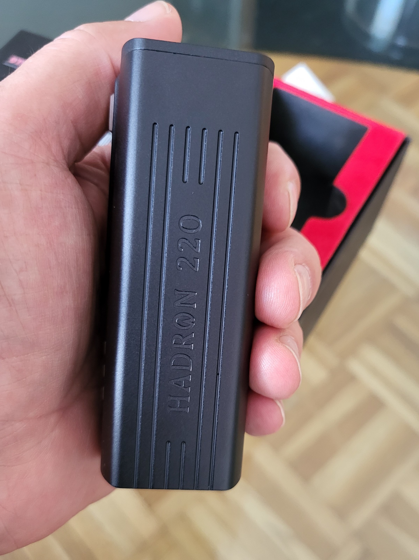 Weil es den Hadron nur noch in dem etwas merkwürdigen Gunmetal geben sollte, hatte ich zuerst den Mod bestellt, um die Farbe vom V3 bestmöglich darauf abzustimmen.