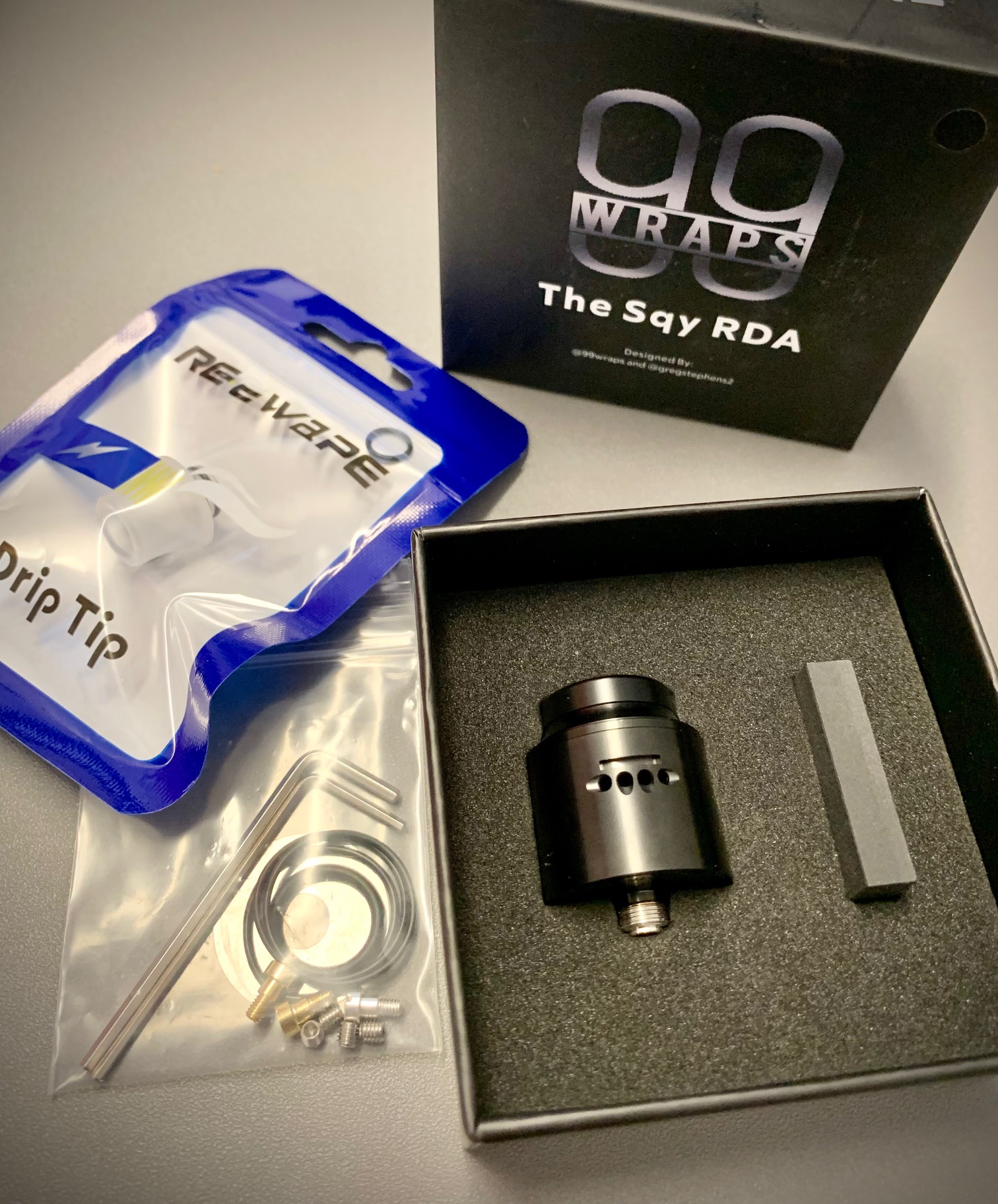 Bei näherer Betrachtung der Fotos identifizierte ich die beiden vermeindlichen Clone als eine El Thunder und eine Vindicator 21 von Kennedy mit passenden RDA in Cheracote Black.