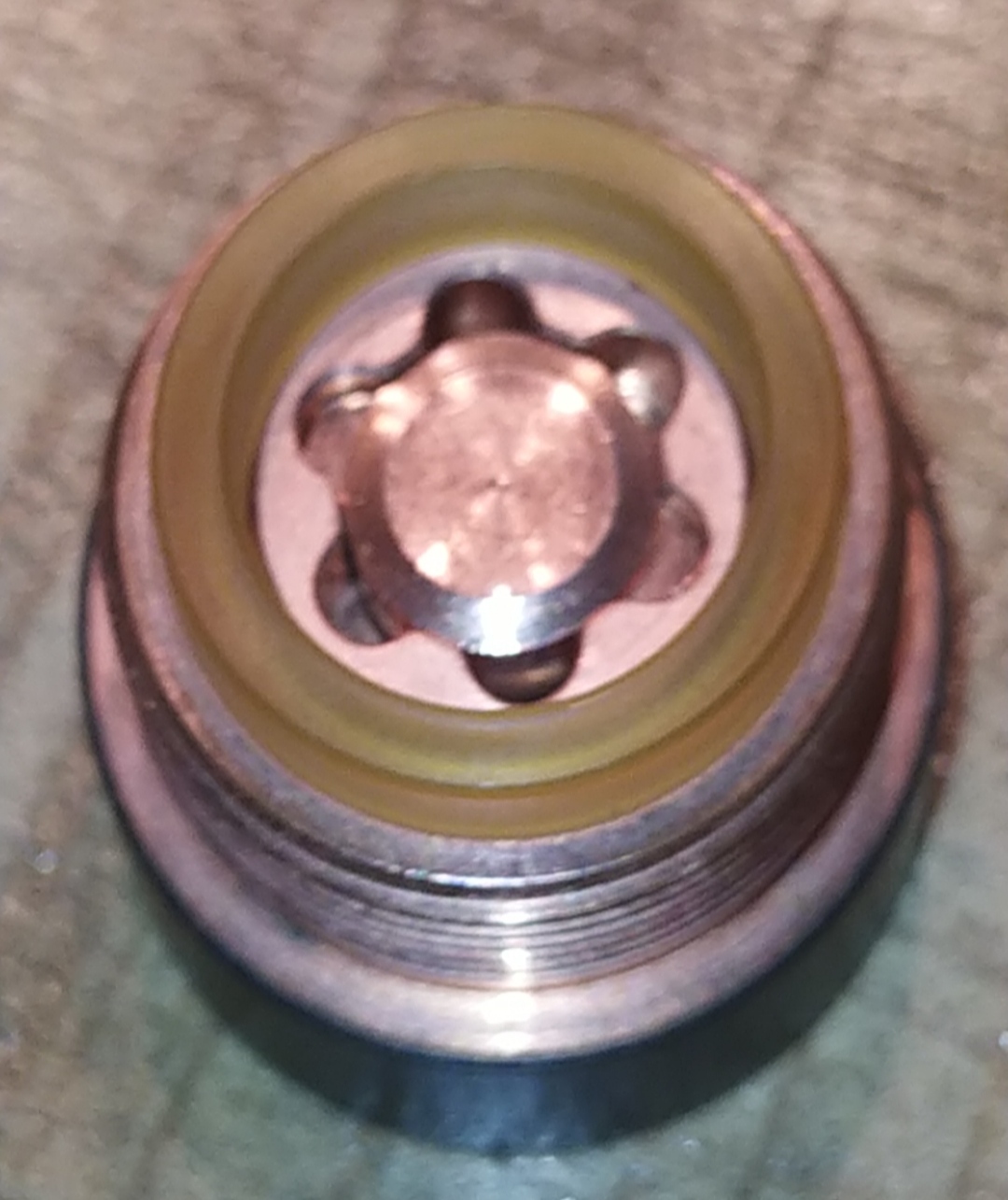 der PEI-Ring im Button des Originals ist oben abgerundet und nicht flächig. Außerdem steht der Kontakt beim Original weiter raus