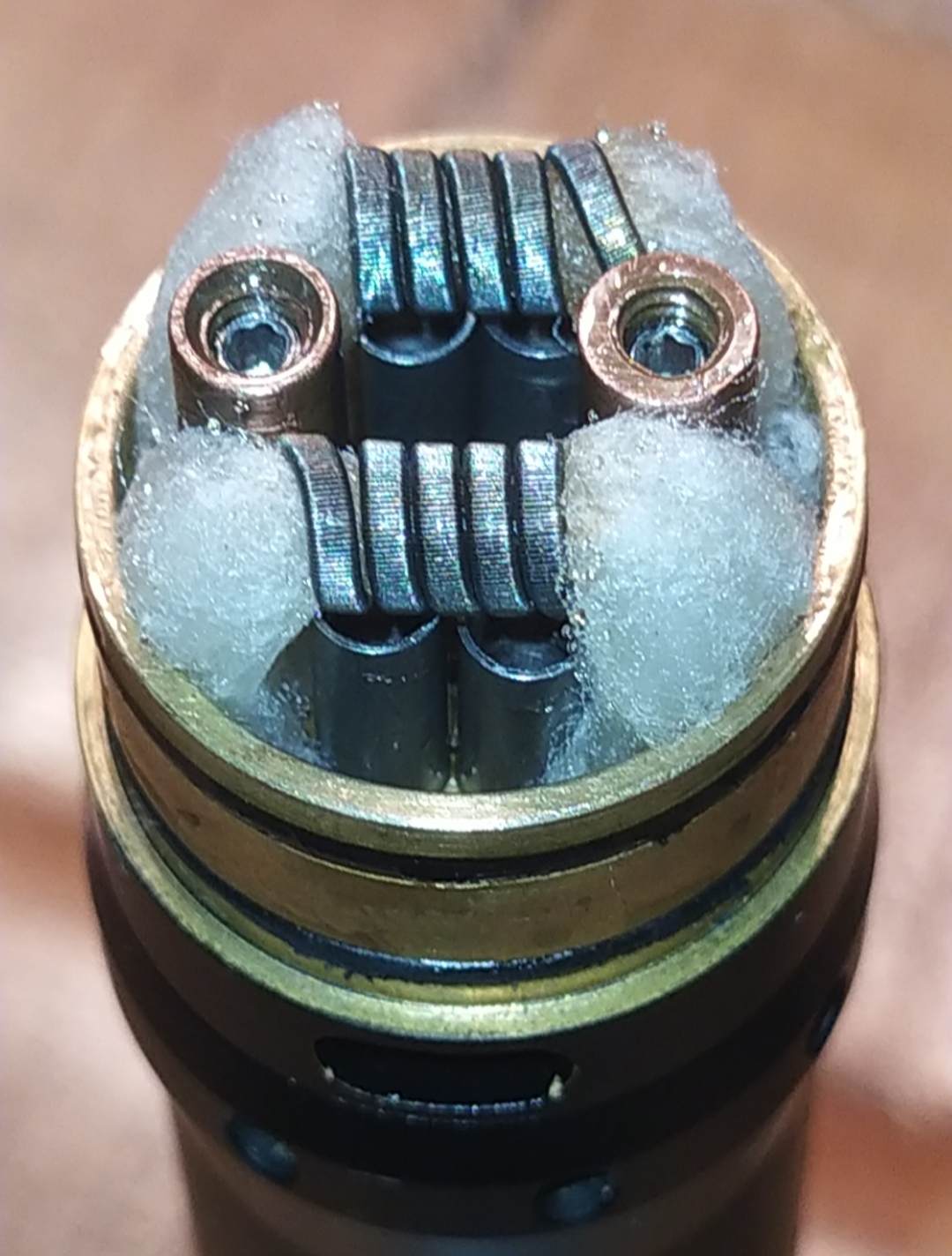 Hab erstmal ganz hastig zwei Fertigcoils von Wotofo eingebaut. Watte rein und feuer frei.