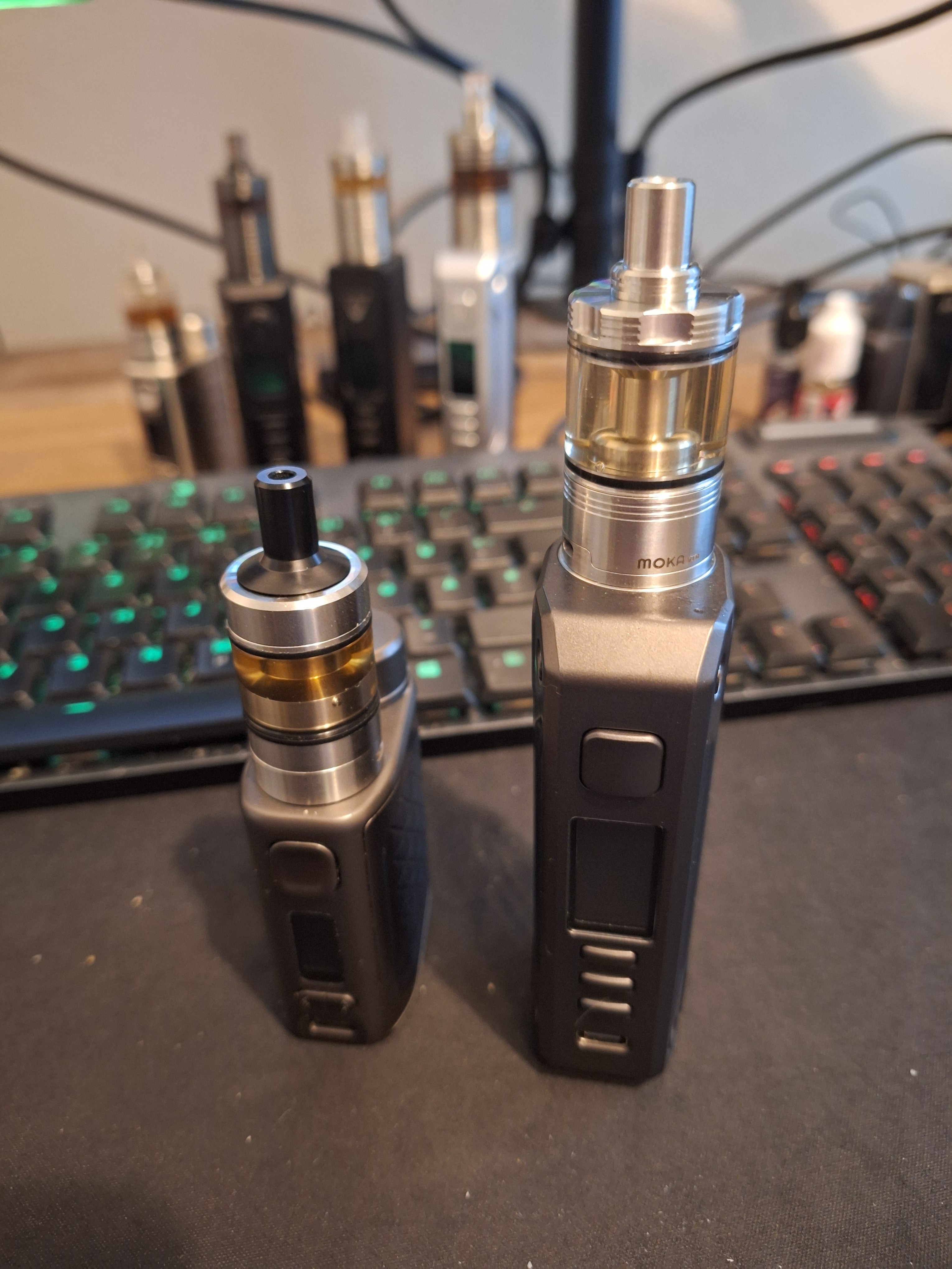 Ich bin ja so ein "einfach auf den Sitz/in die Tasche/Sonstwohin-Schmeisser", das geht mit Dochten nie ohne Kleckerei, ist halt ne "undichte Stelle" bauartbedingt. Mir sind die zu unpraktisch und wenn ich dann mal topcoilen will, nehm ich halt nen RDA zu Hause.