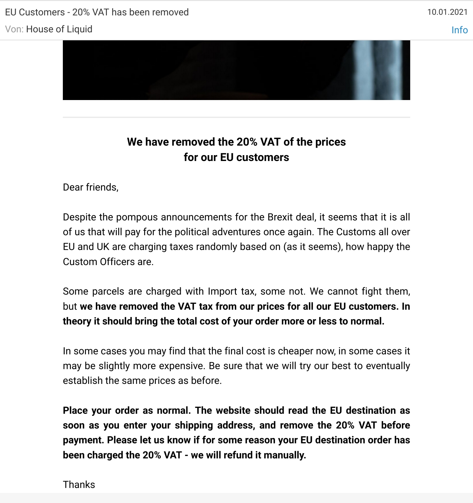 Also das "große Durcheinander" hat bereits begonnen. Die Infomail von House of Liquids stelle ich mal hier ein.