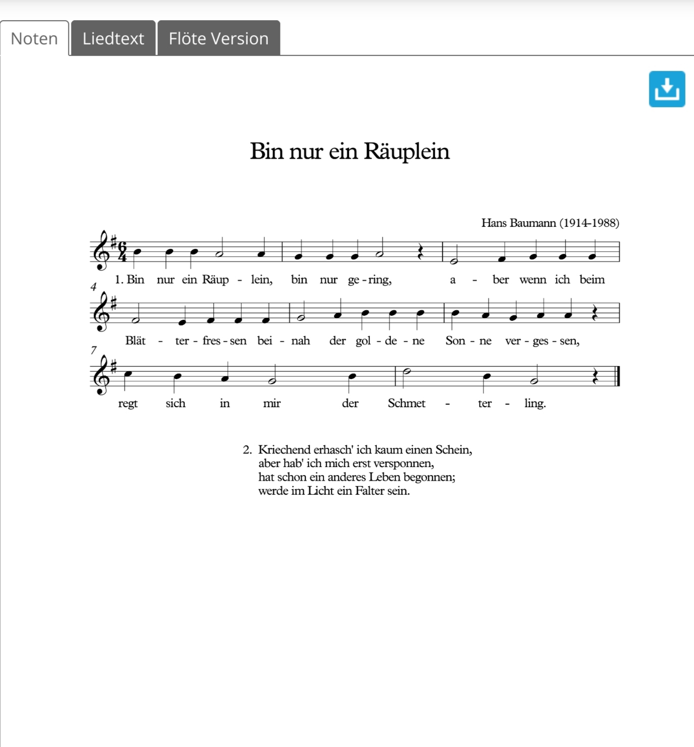 bin nur ein räuplein, bin nur gering hans baumann unser liederbuch - zum singen in schule und haus, 1958 A823 Nachtrag:
