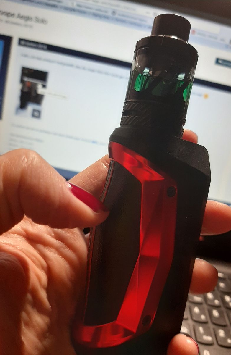 Die Aegis Solo ist die kleine Schwester des Aegis Legend und ähnlich robust verarbeitet. Ein Echtlederbesatz und eine leicht geschwungene Front machen ihn sehr handfreundlich, man hat ihn einfach gern in der Hand. Dadurch, das sie nur einen Akku fasst, ist sie deutlich leichter und kleiner wie die Legend, so das sie auch in die Hosen- oder Hemdtasche passt.