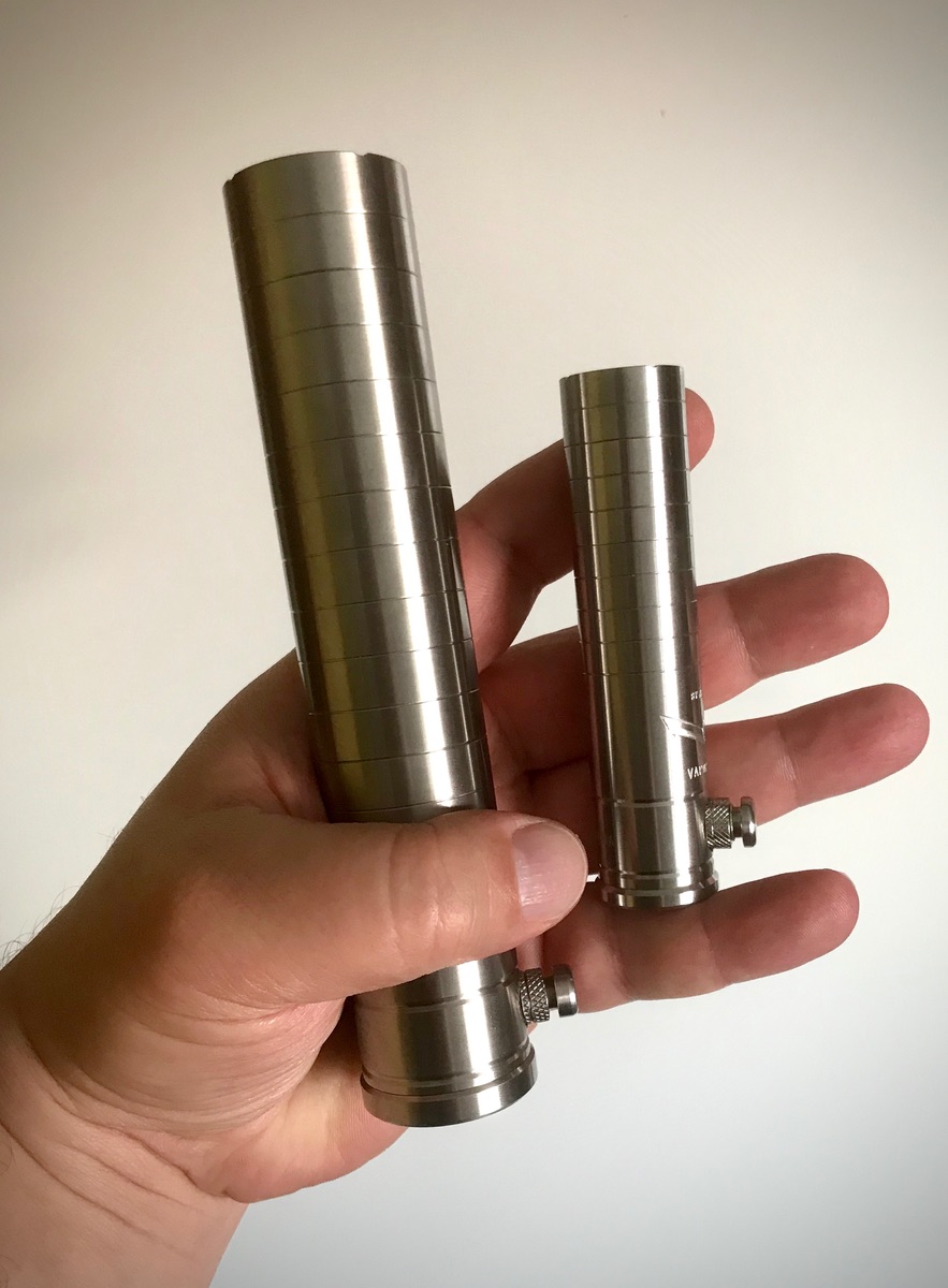 Mich stören zudem mittlerweile die 26650er Akkus. Ist die 5. Akkugröße, die ich verwende und irgendwann wird es schwierig alle mal wieder zu nutzen/entladen. Bin schon am überlegen alles mit 26650 rauszuwerfen.Beim Mini finde ich die 23mm auch etwas einschränkend, aber die Auswahl an passenden VDs ist doch deutlich größer als beim Dicken.