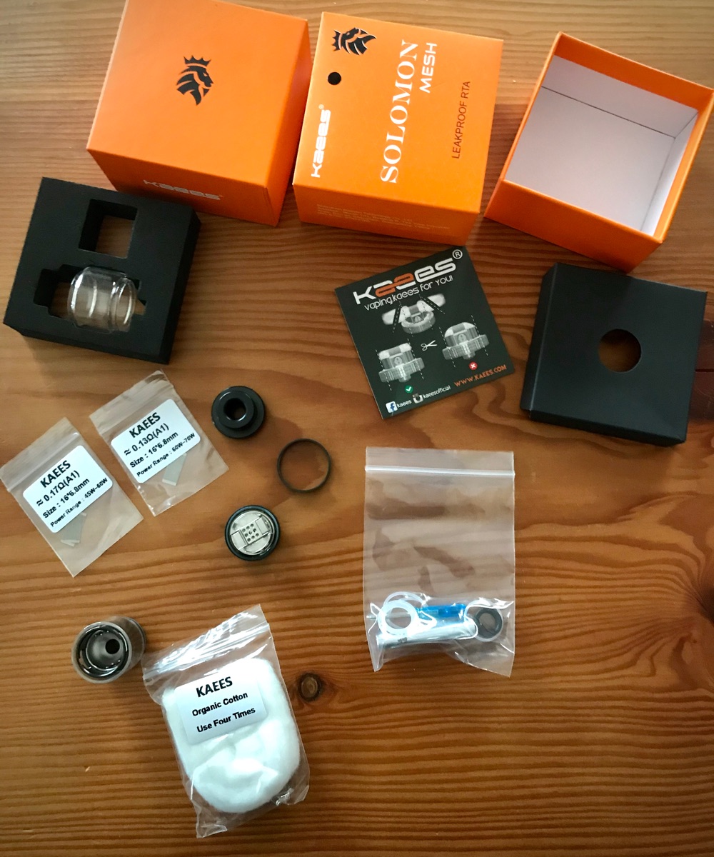 - dabei sind noch 2x 2 Meshplättchen, Biegehilfe, Ersatz-O-Ringe, Ersatzschrauven, Watte, Anleitung und der berühmte, kleine blaue Schraubenzieher.