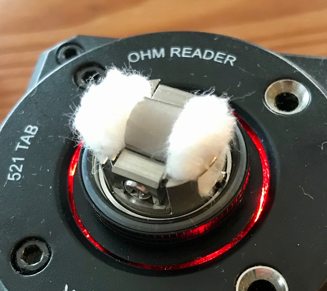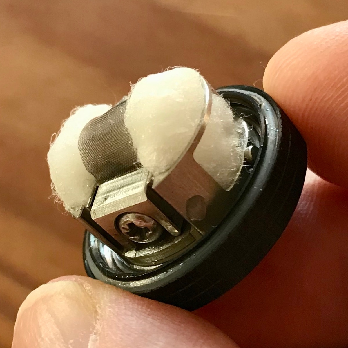 Jetzt passt es besser. Die Sättigung der Watte ist gut so. Er blubbert aber noch leicht bei hoher Leistung und kräftigem Ziehen.