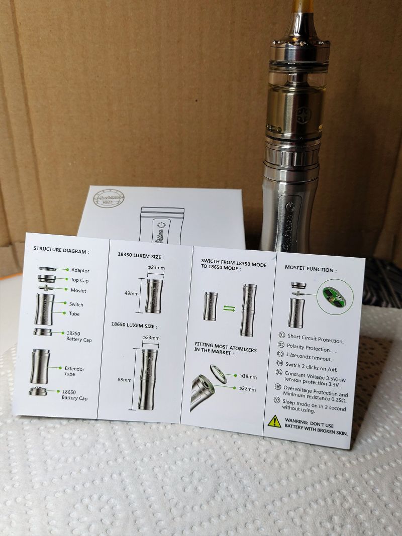 Die Tube kann mit 18650er aber auch mit 18350er Akku betrieben werden.