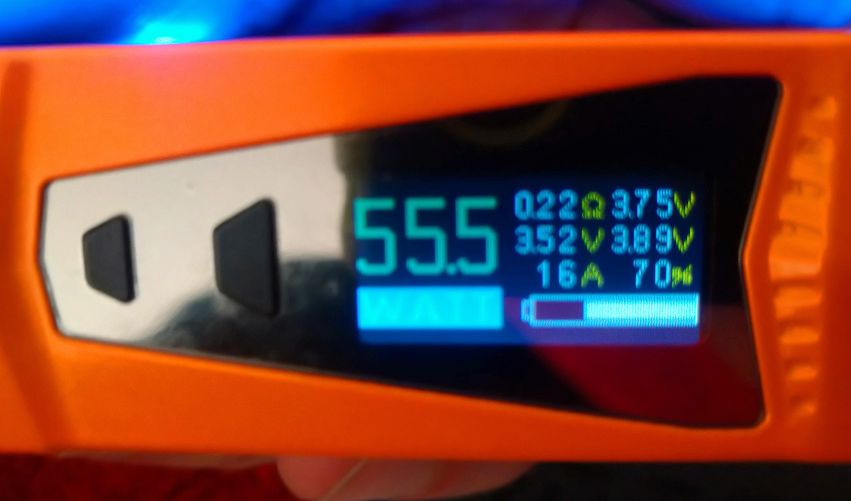 Nacht ein paar Zügen und paar mal an der Airflow spielen und etwas am Watt-Rad drehen bin ich jetzt bei 3/4 offener Airflow und 55 Watt mit 60 Watt Preheat für 0,2 Sec.