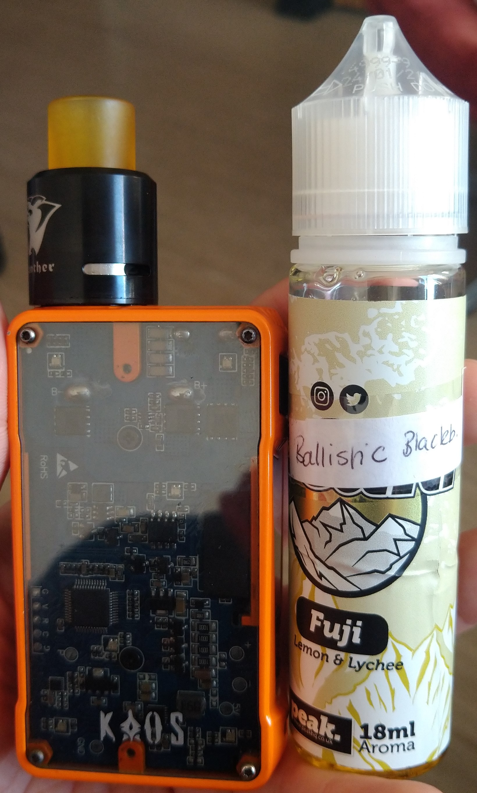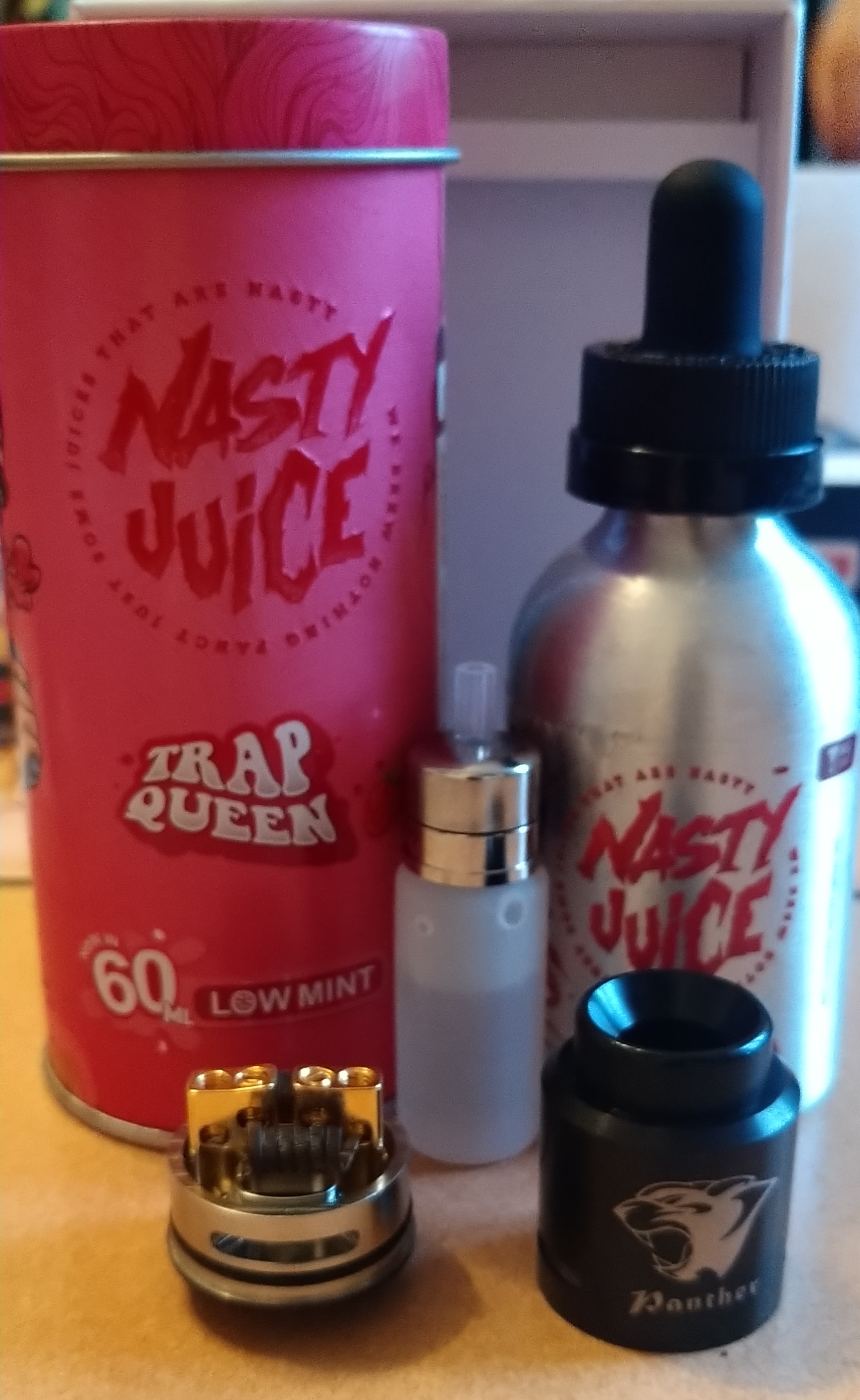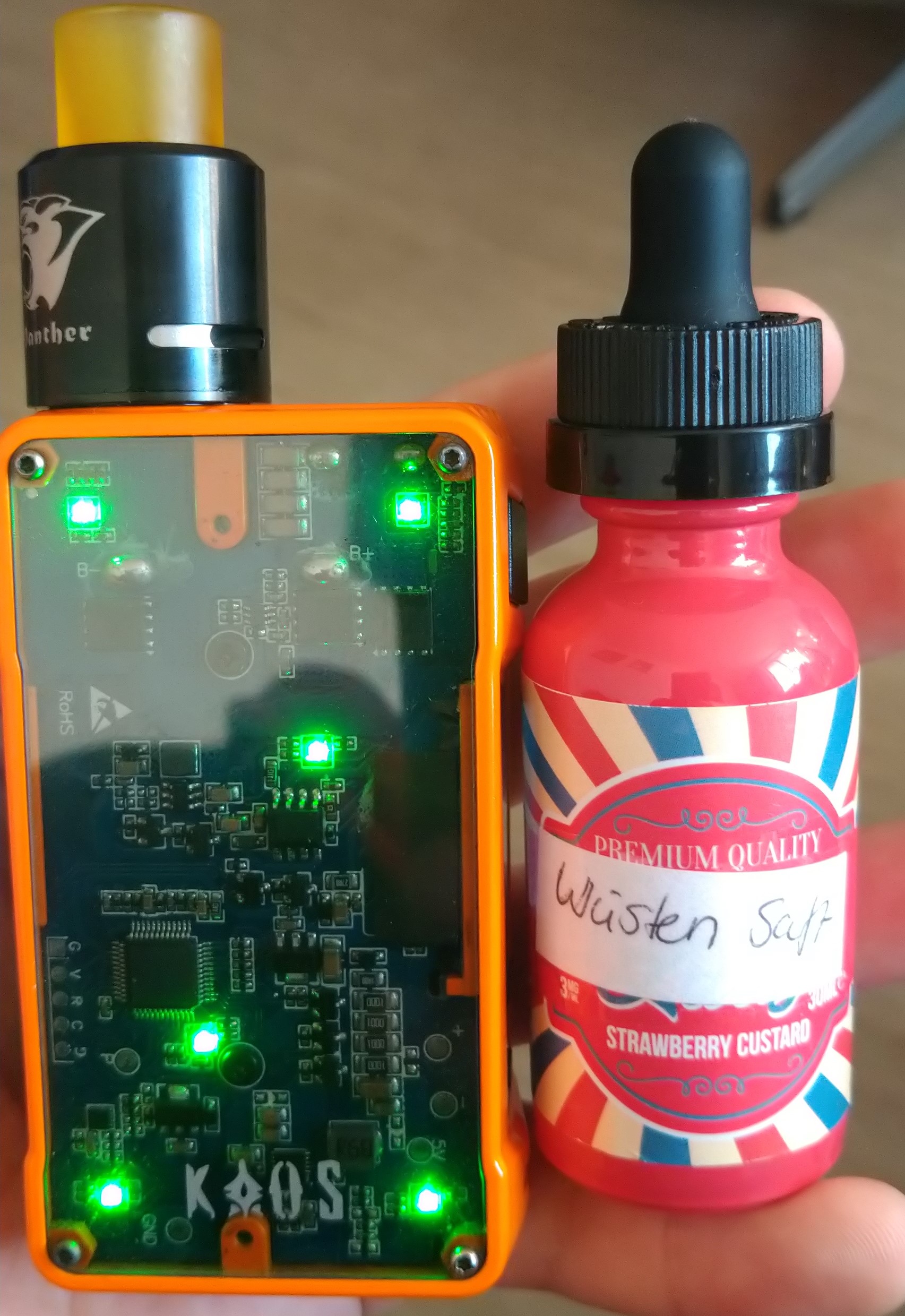 Neben bei nutze ich auch gern mein Panther RDA, in schwarz, zum verkosten neuer Liquids oder zum einfach mal zum Geschmack wechseln.