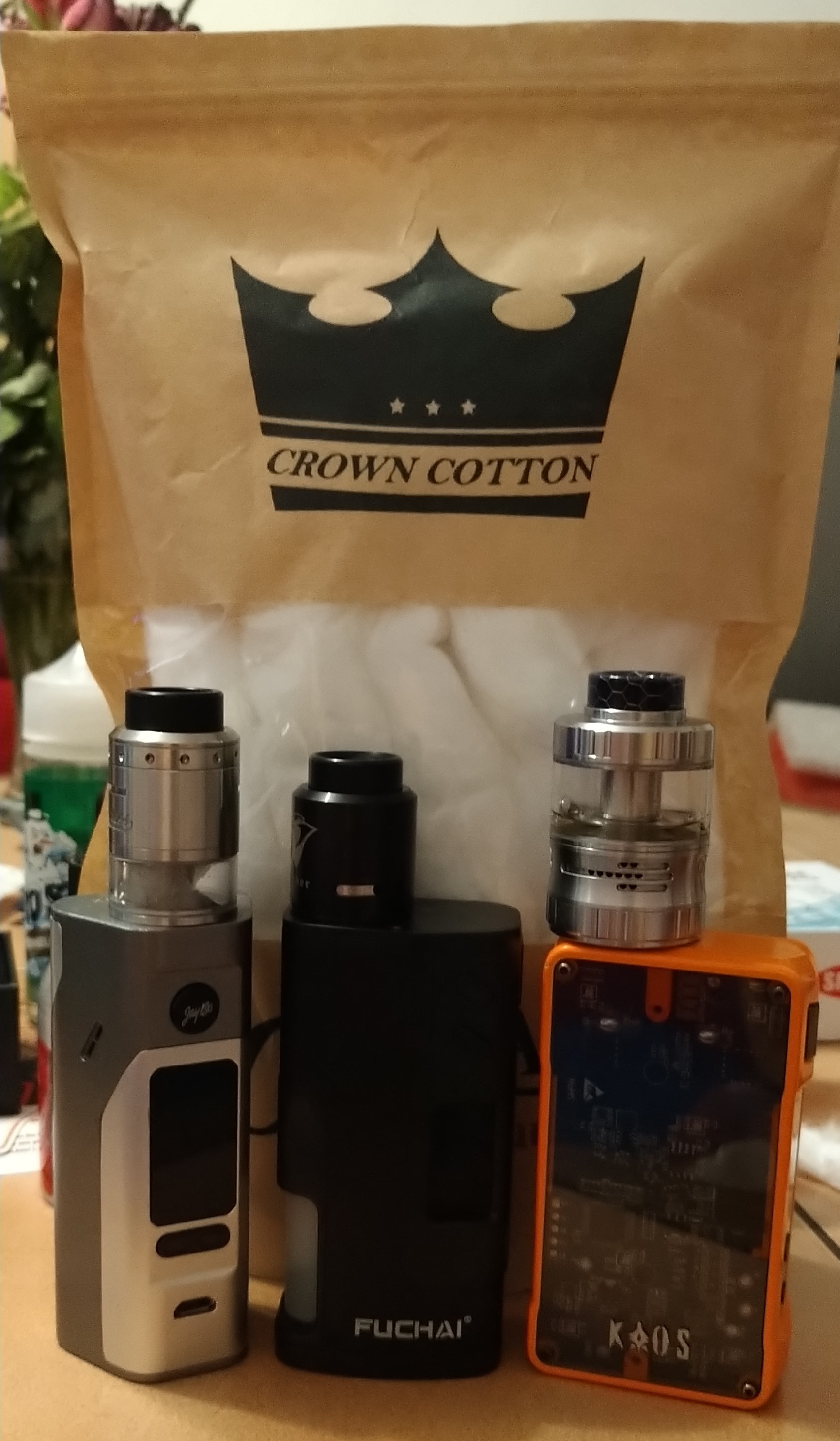 Angefangen mit Dampfen habe ich mit einem Joyetech Cuboid 200 und einem Smok TFV8 Cloud Beast, erst mit Fertigcoil aber nach 3 Wochen dann mit RBA und Selbstbuild Coils.