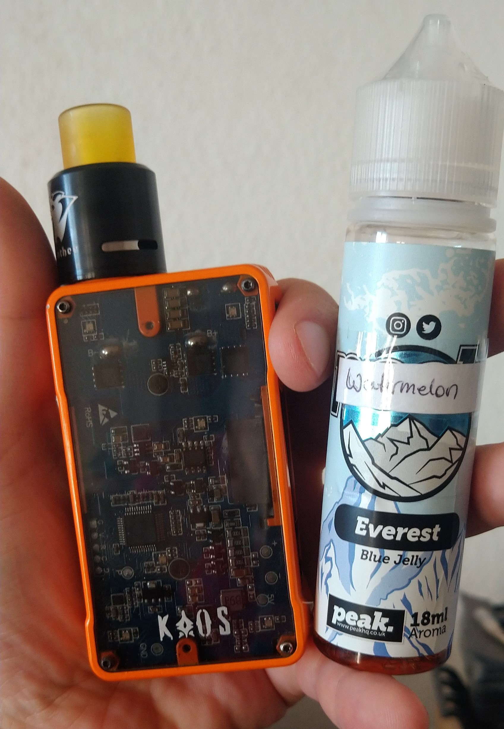 Meine Frau tat mir dies gleich und ist inzwischen mit einer Wismec Reuleaux 2/3 und einem Geek Vape Peerless RDTA ausgestattet.