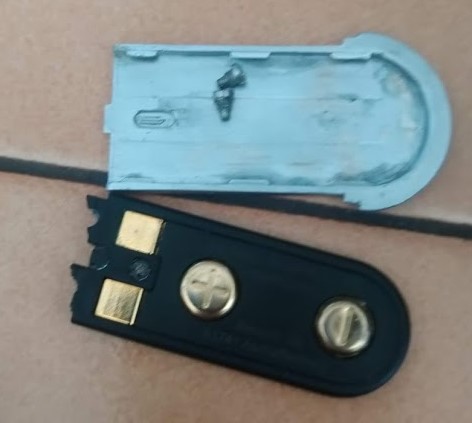 Auch die kleine Bakelit Applikation besteht nach dem zerlegen aus 4 Teilen mit 3 Schrauben.