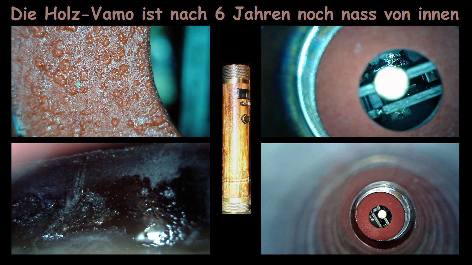 2014 war mir auf der wunderschönen Holz-Vamo über Nacht ein Verdampfer ausgelaufen. Nur wenig Liquid floss in den 510er Anschluss. Seither feuert sie nicht mehr. Das Display zeigt zwar noch den Widerstand richtig an, man kann auch alles einstellen, sie zeigt beim Feuern sogar, dass sie feuert - aber nüscht geschieht.