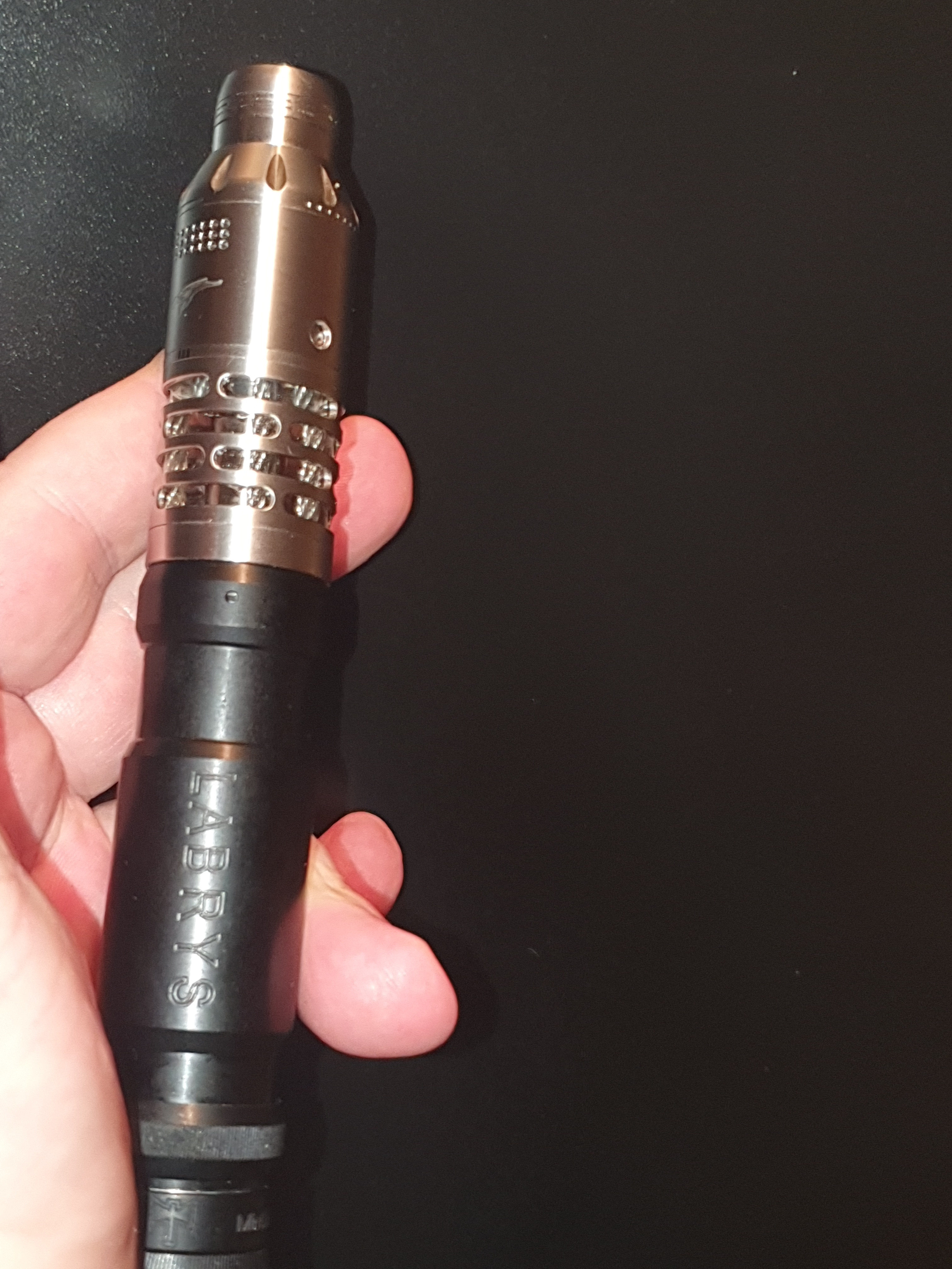 Mittlerweile habe ich meine Wicklung noch ein wenig verändert und nutze nun die übliche Standardwicklung von Vandy Vape MTL super feiner Clapton Coil mit zwei Wicklungen mehr, was nun den Widerstand auf 1,9 Ohm erhöhte. Dadurch komme ich sogar schon mit 8 Watt problemlos zu herrlich geschmackvollem, dichten Dampf und bin mit einer Tankfüllung von fast 9 ml (dank der Herausnahme von 2 Stahlseilen - von ursprünglich 4) wunderbar den ganzen Tag gut versorgt - und das trotz weniger Stromkapazität im Akku durch einen 18650er Akku hier - statt der dicken 21700er Akkus in den beiden anderen Stubby-Dampfen!